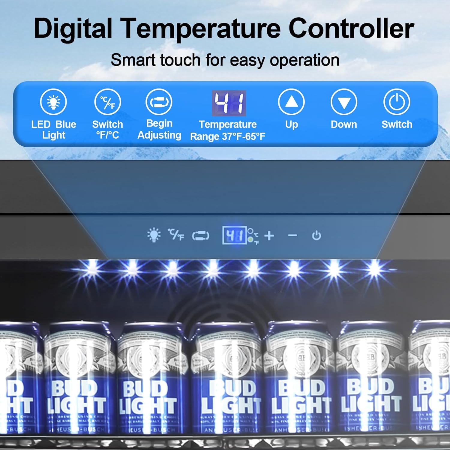 - 360° CIRCULATING AIR COOLING: Equipped with a powerful compressor cooling system and energy-efficient technology, this beverage cooler delivers strong, fast, and stable cooling performance, with a temperature range of 37° F - 64° F (1 - 16° C). It keeps your beverage at a constant temperature while quickly and reliably cooling your drinks. Additionally, it minimizes vibrations and noise, with an operational noise as low as 40 decibels.