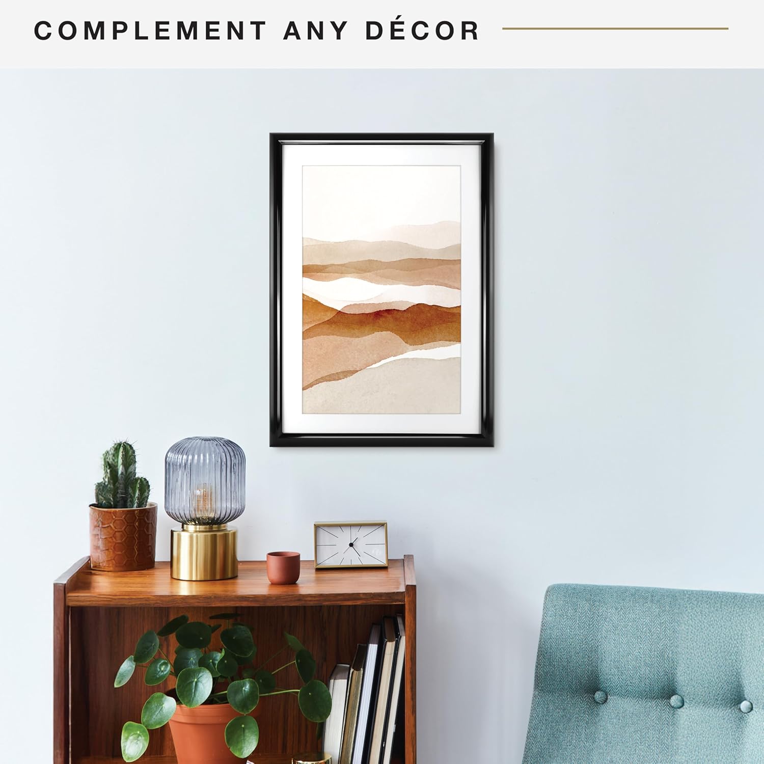 - DIMENSIONS: Each large wall picture frame features a sleek black profile & holds a 14 x 20-inch poster without the mat, or use the included mat for 11 x 17-inch display.