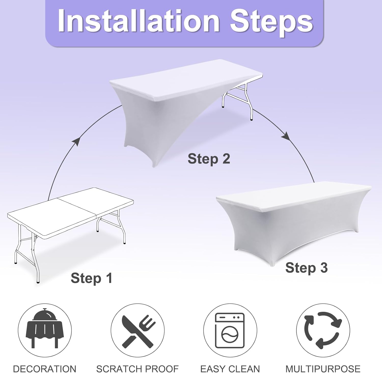 - 2.Why This Cover?: This table cover made from 90% high-quality polyester and 10% spandex material. So that it is Durable, Long-Lasting, Wrinkle-Resistant. The strong elastic hem ensures a tight grip on your table, preventing slipping or sliding, even during active use. Itās built to last through many times washes and uses. Whether itās a family dinner, wedding, birthday party, holiday celebration, or outdoor picnic, this tablecloth adds a touch of elegance to any setting.
