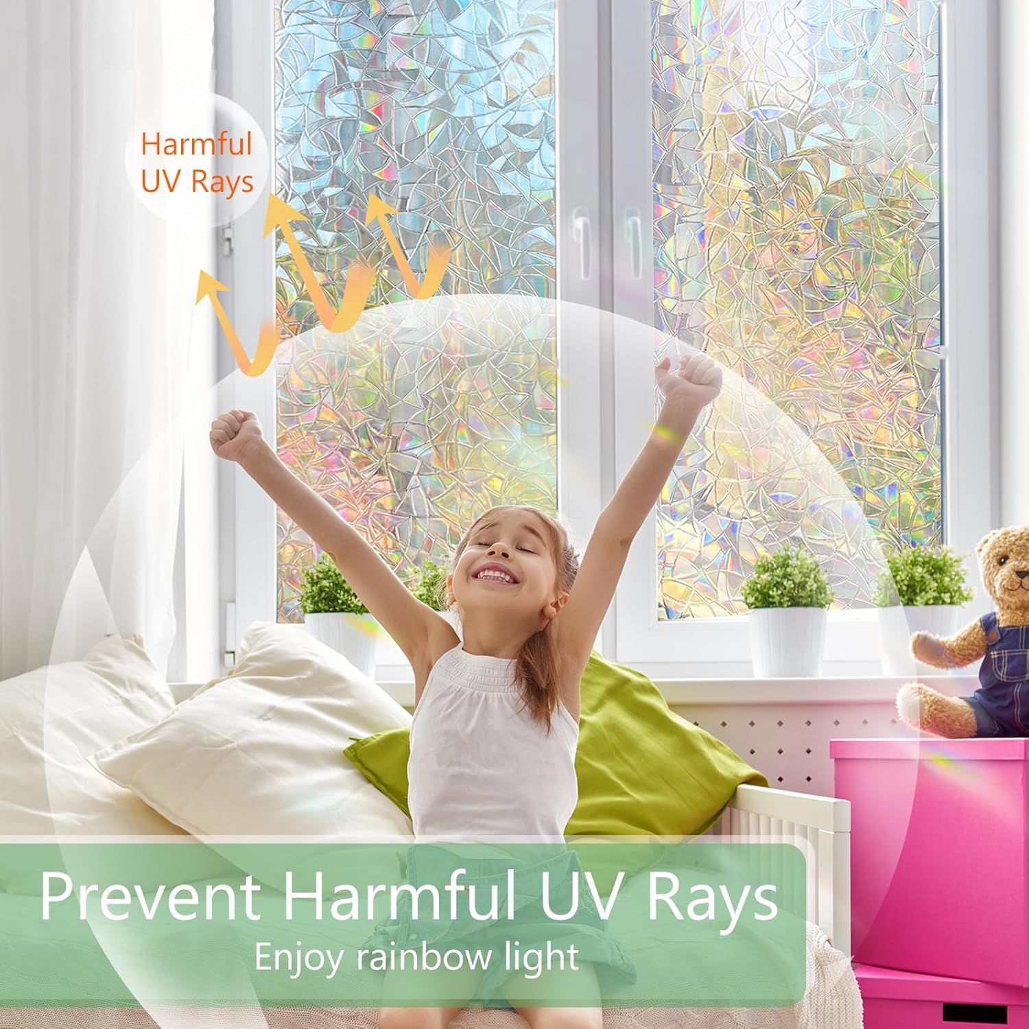 HIDBEA Window Privacy Film Static Clings, Rainbow Window Film, 3D Decals Non-Adhesive Window Vinyl Film for Home Door, 29.5 Inch x 6.5 Feet
