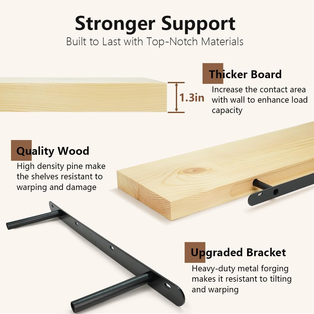 - Farmhouse Finished: Applying clear varnish to solid wood boards, the shelves are enhanced for durability with anti-moisture and anti-heat properties while preserving the natural grain and knots of the pine wood. Adorn your home in style