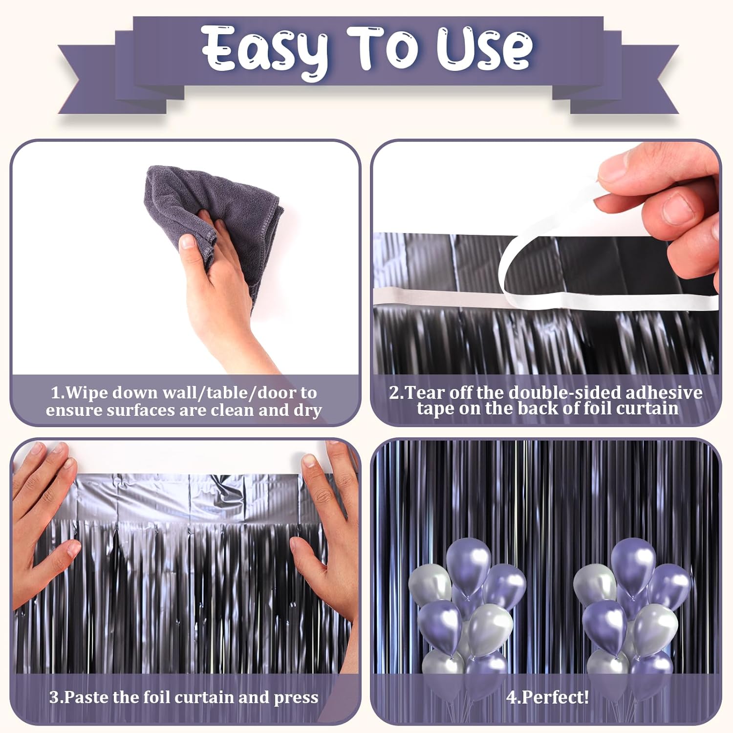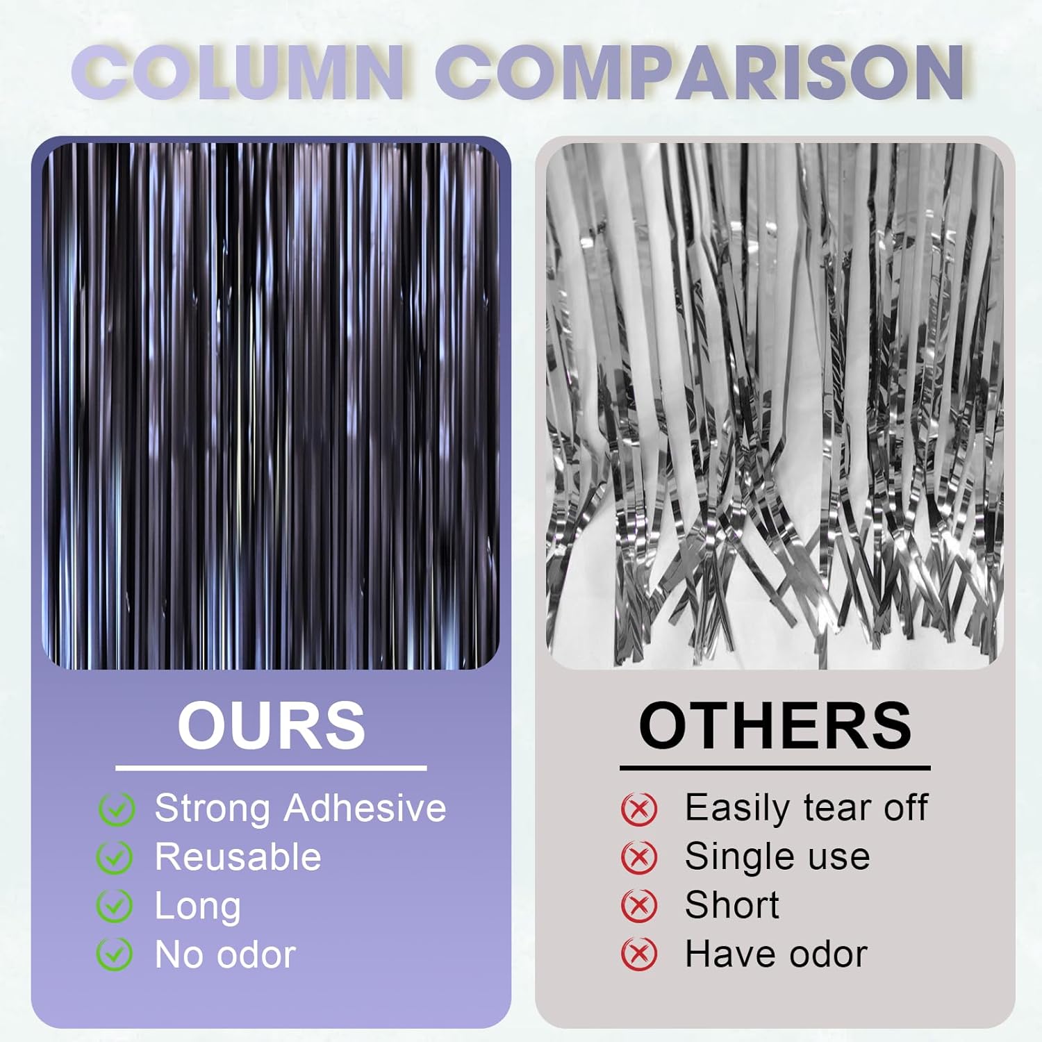 - Easy to Assemble: The back of the blue blue fringe curtain has double-sided tape, which can be stuck very firmly to any place you want such as walls, tables, door frames. You can use scissors to cut the length you want, and you can use two or more pieces of the curtain to splice and overlap to achieve unexpected effects