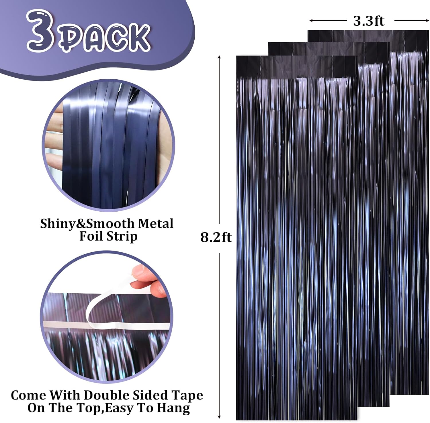 - Package Included: 3 packs of blue foil fringe curtains, the size of the foil curtain is 3.3*8.2ft. It's long enough to fit any occasion