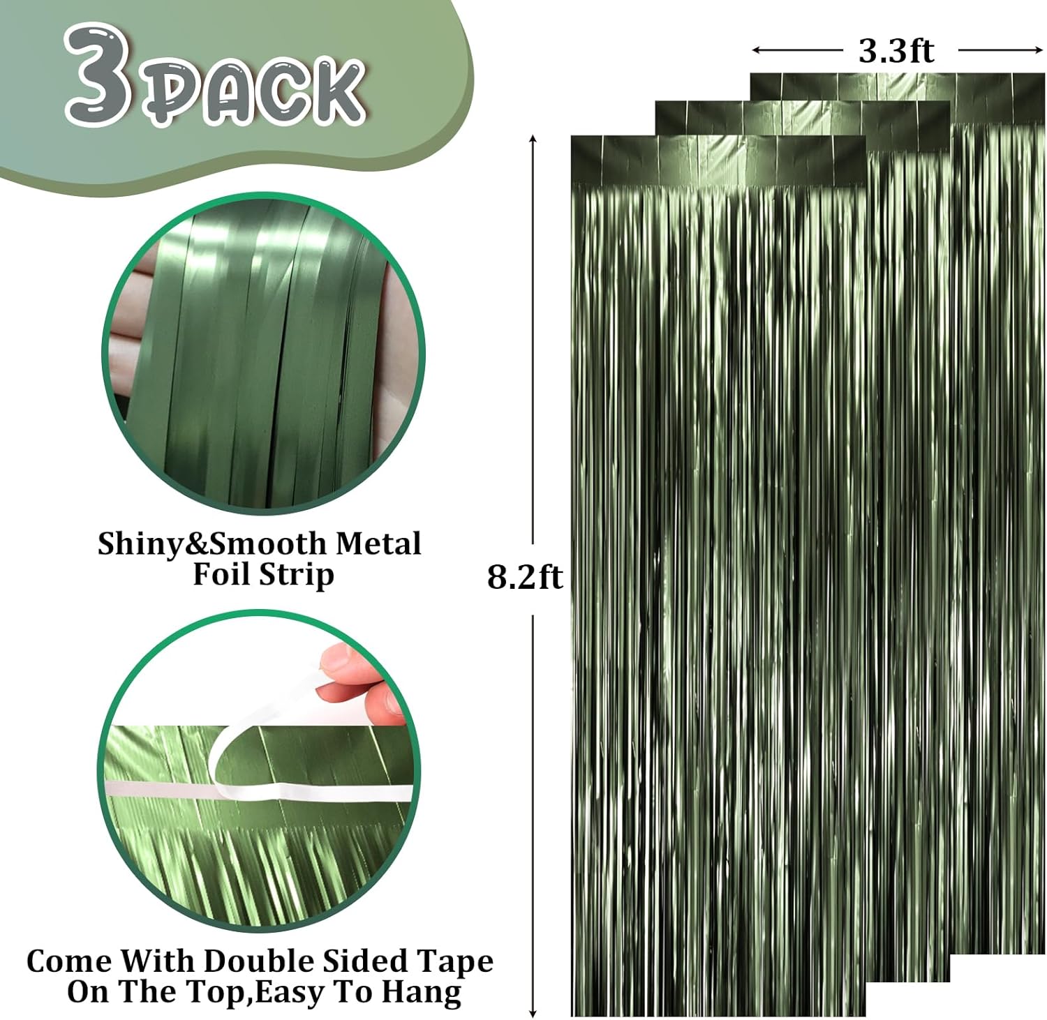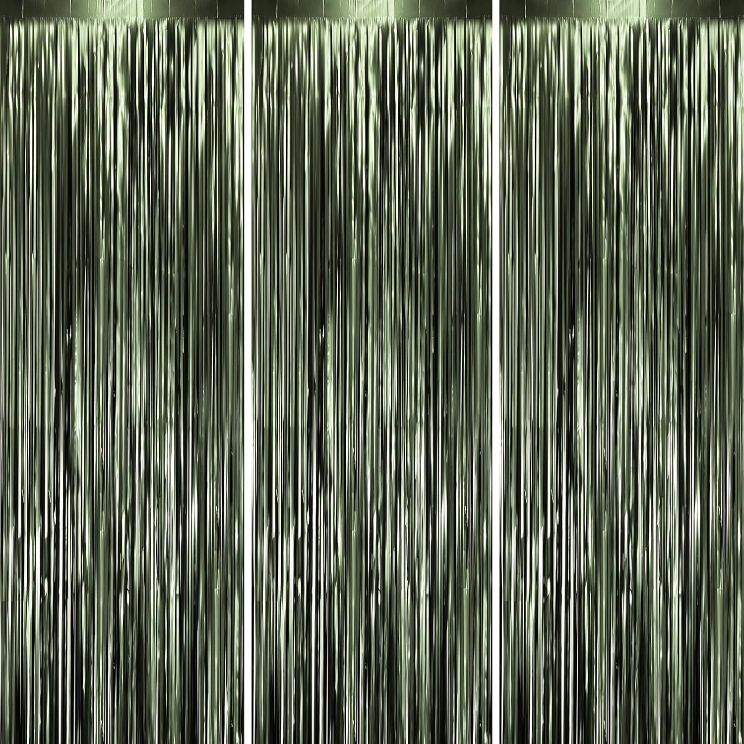 3 Pack 3.3 x 8.2 ft Matte Green Foil Fringe Backdrop Curtains, Tinsel Streamers Party Decorations, Fringe Backdrop, Door Shimmer for Graduation, Birthday Party