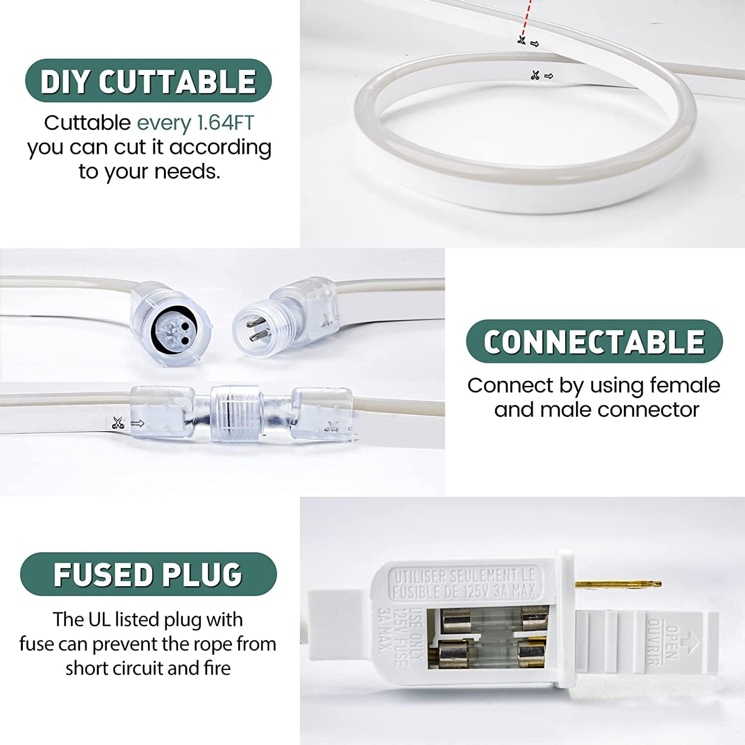 - ETL Listed & High Quality --The power plug of our led rope light is UL listed. Built-in fuse design for increased safety and reliability. GZBtech vivid neon rope light uses high-quality120 LEDs/M SMD 2835 LED chips and PVC soft glue, smooth surface and anti-yellowing, without spots or dark dots, brighter light and low power consumption.