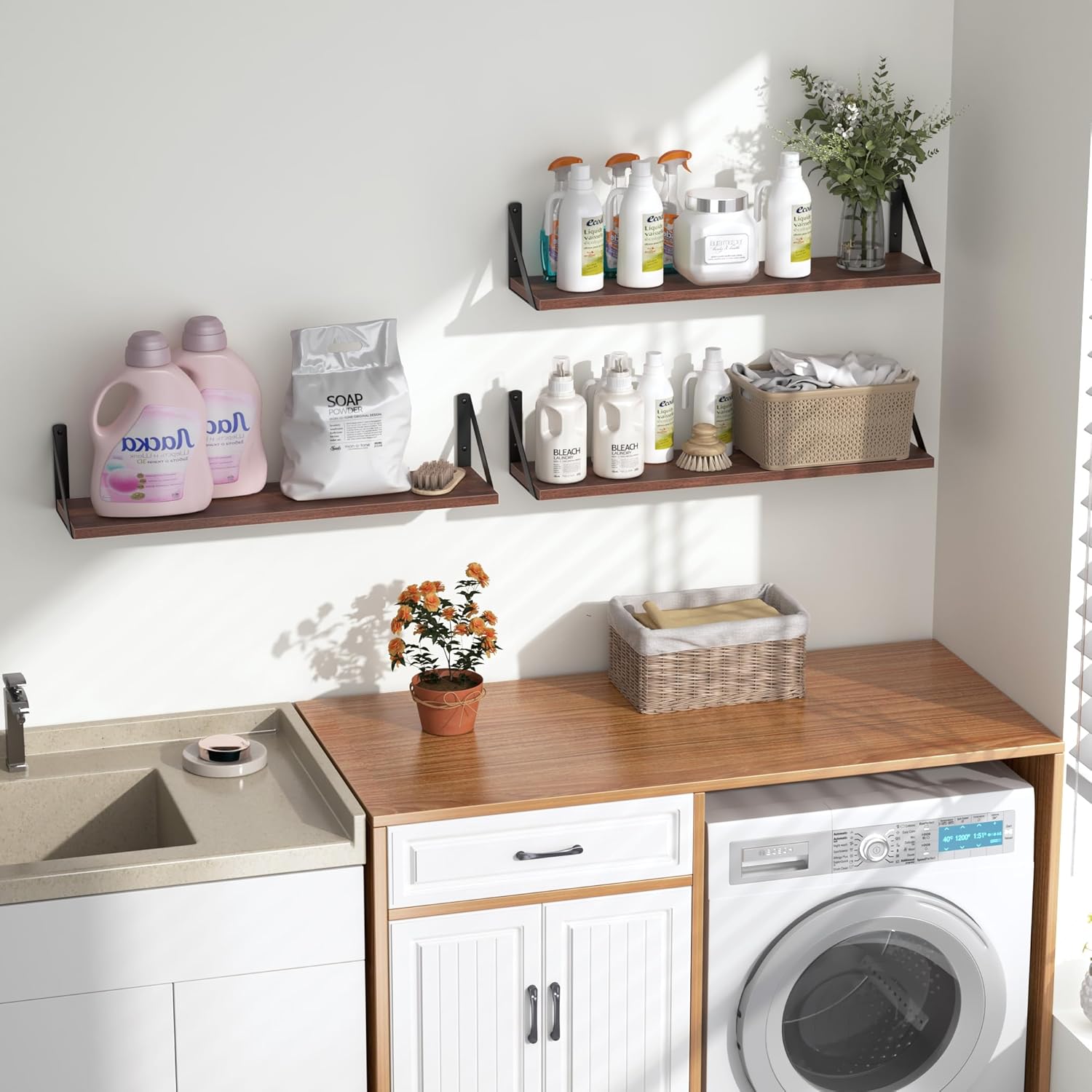 Heimlove Floating Shelves for Wall, 24 Inch Long Wood Floating Shelves Set of 3, Wall Mounted Hanging Shelf for Bathroom Bedroom Kitchen, Walnut