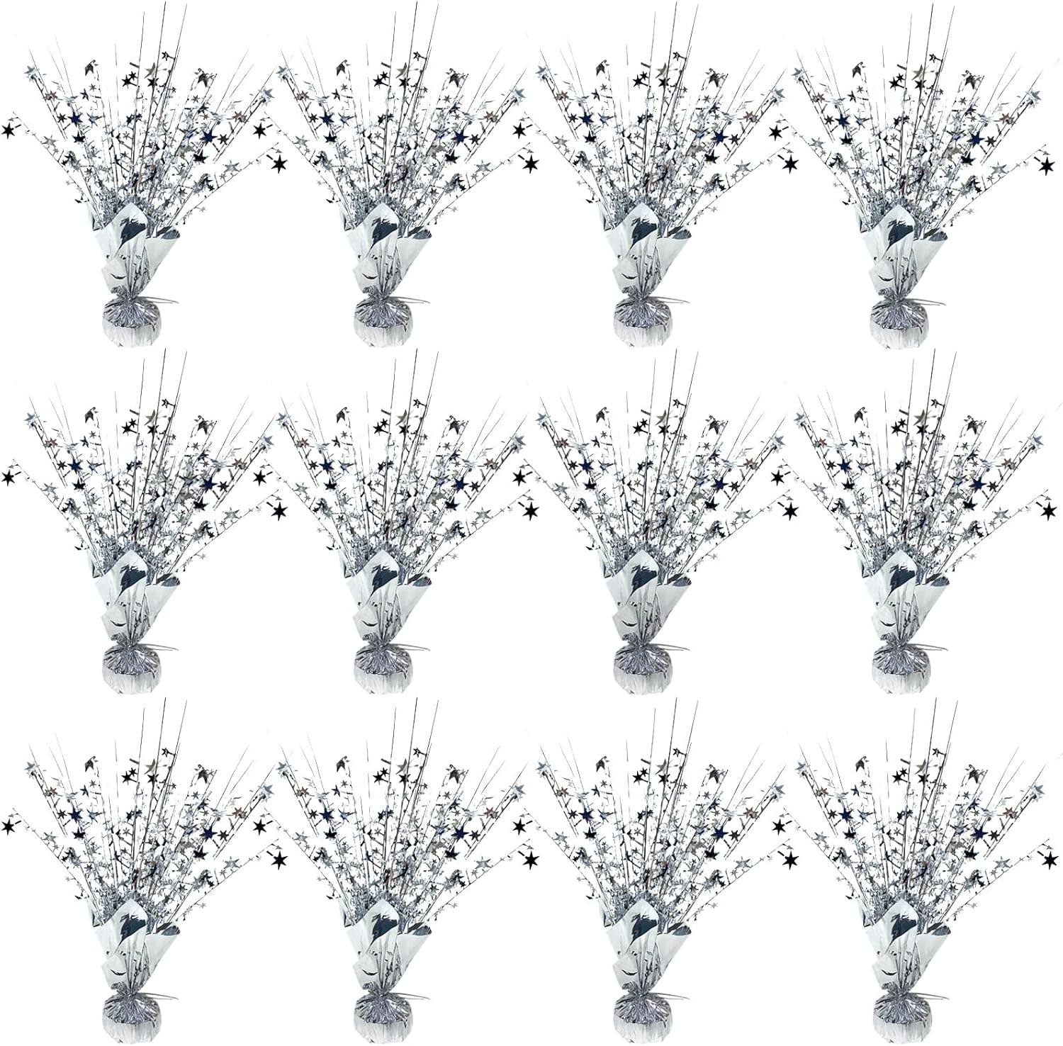 12 Pack Metallic Foil Spray Centerpiece Star Table Decoration Burst Table Centerpieces for Birthday Wedding Anniversary Graduation Holiday Party Supplies Decor, Silver