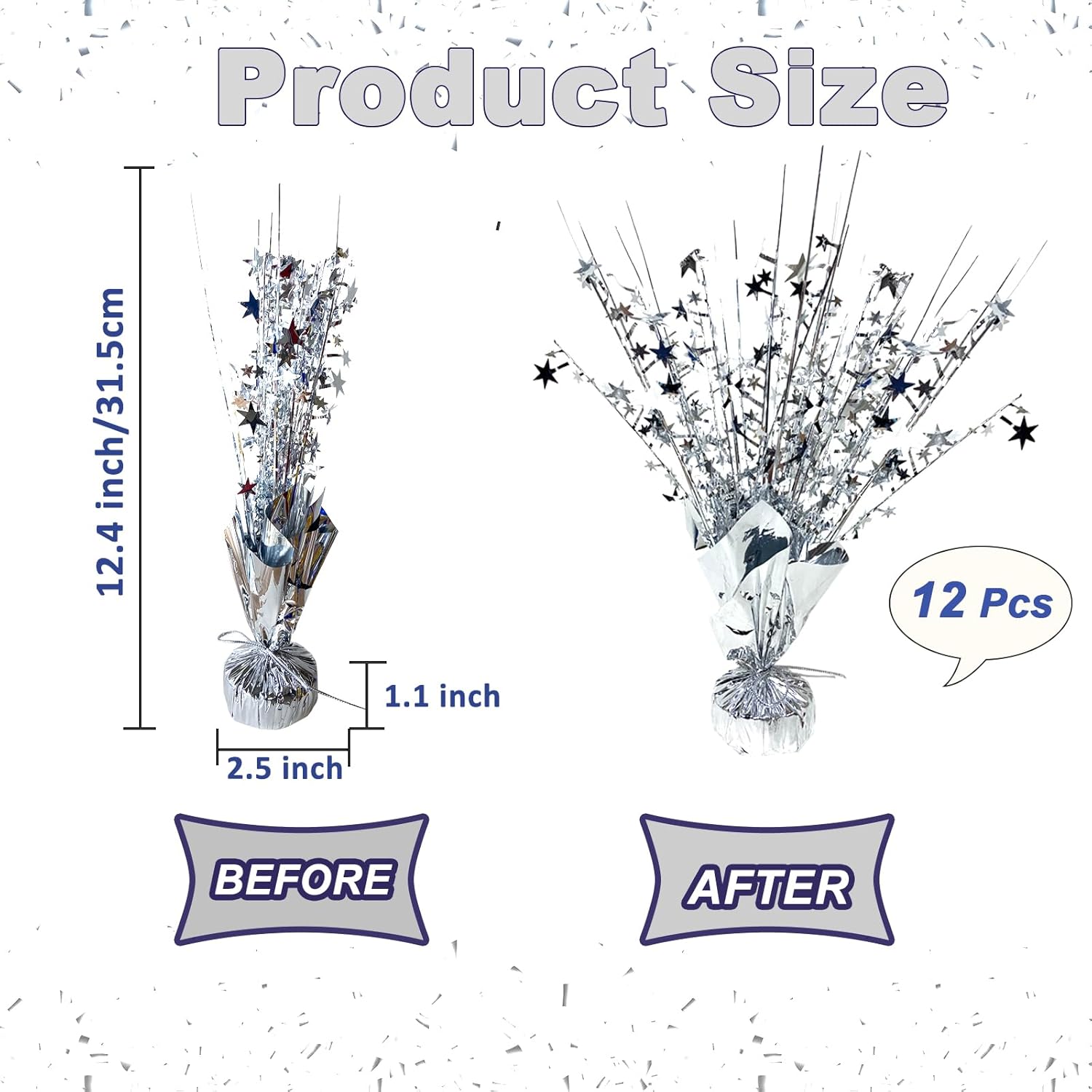 - Proper Size: Metallic plastic star centerpieces is 12.4" height, and the firm base is 2.5" in the diameter. Party decorations for tables can be placed in the middle of the table to attract people's attention without taking up too much space, adorable and glitter to add party event