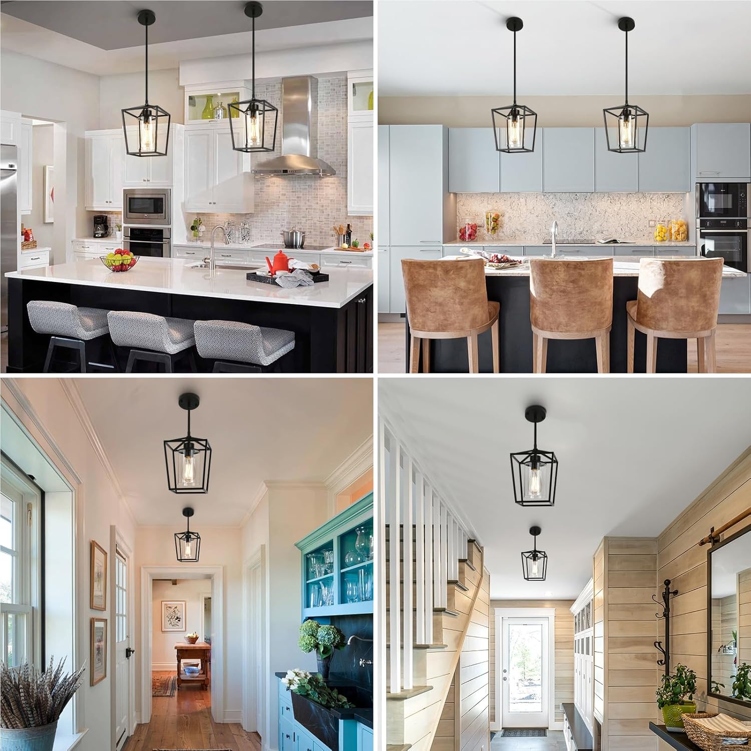 - 【Industrial Pendant Light】This black pendant lights is made of sturdy metal frame and clear glass lampshade, gives off soft light and gets modern statement on a classic lantern shape. This sleek and minimalistic pendant lighting for kitchen island would be a focal point in your kitchen island, dining room, front porch, hallway, foyer, entryway, ect.