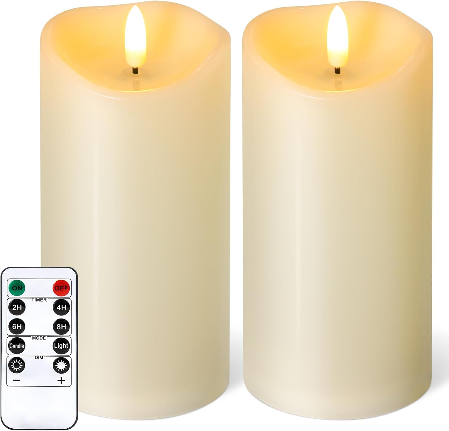 - 10 Key Remote Control with Timer - The remote controls are user-friendly and work from long distance, allowing you to easily operate the remote candles from your sofa or bed with the remote control within 18 ft. Easily switch ON/OFF, change light modes, adjust brightness, set the timers. The timer function allows you to set 2, 4, 6 and 8 hours, cycling every 24 hours