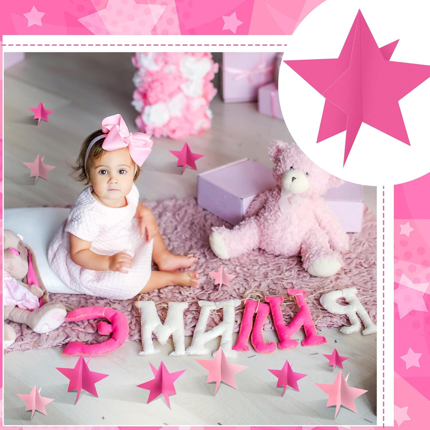 - Material and Stylish Colors: dive into the world of fun with our star decorations, masterfully crafted with 300g cardboard material for durability; Our star centerpieces come in vibrant hues of glitter pink that set the stage for an unforgettable party atmosphere