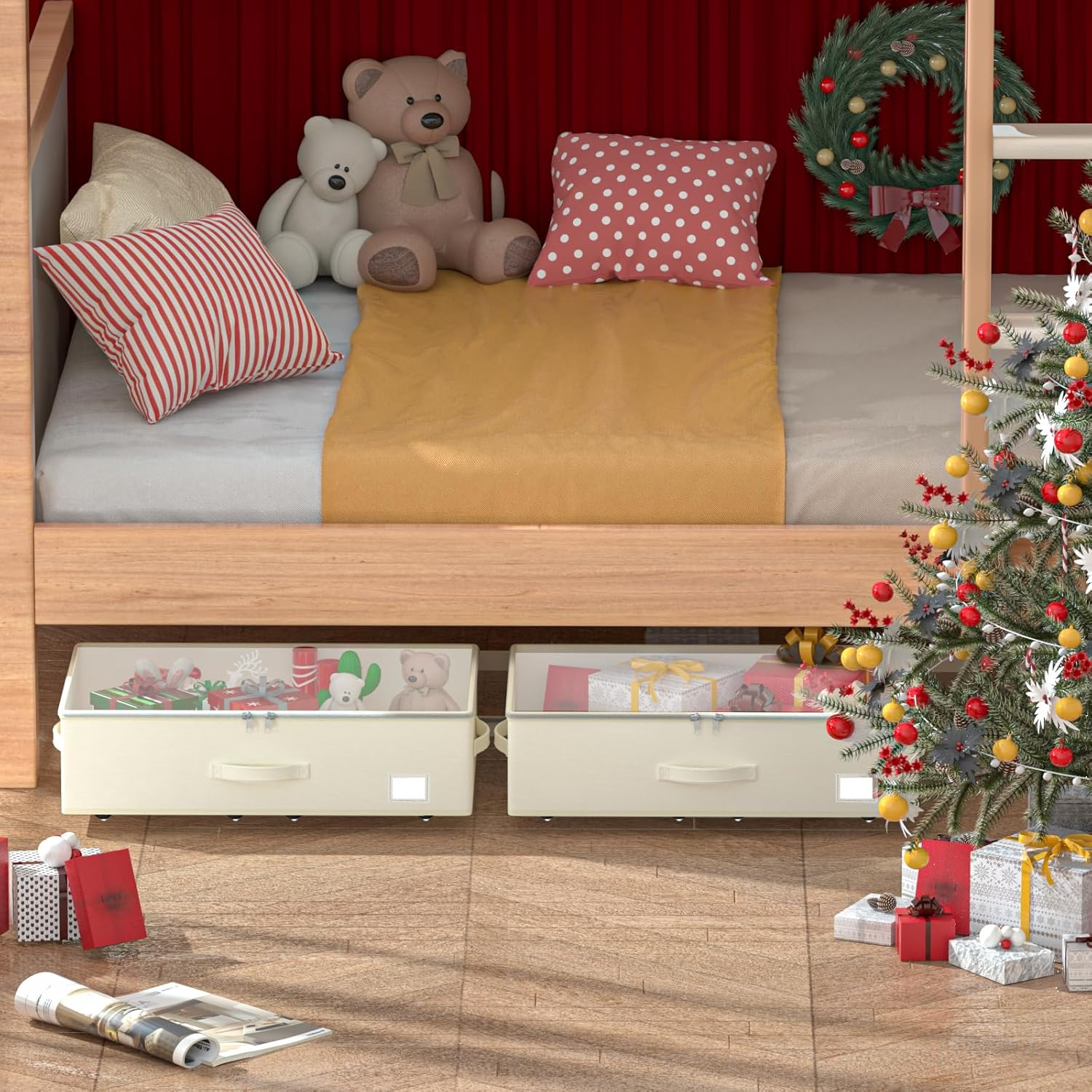 - [Strong Weight-Bearing Capability]: Made of durable oxford fabric, our underbed storage is built to withstand heavy weights. The bottom bracket is reinforced with hard wood, providing superior support compared to other elastic band structures. You can confidently store items weighing up to 40 pounds, such as books, However, when placing heavy objects above, please be careful to move slowly to prevent the wheels from being damaged by excessive lateral force!