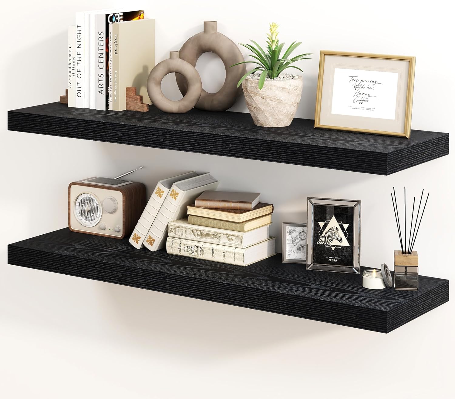 30 Inch Floating Shelves, Rustic Floating Wall Shelves 8 Inch Deep, 30 x 8 Floating Shelves for Home Decor, Deep Display & Storage Shelves for Kitchen, Bathroom, Living Room, Black Color, Set of 2