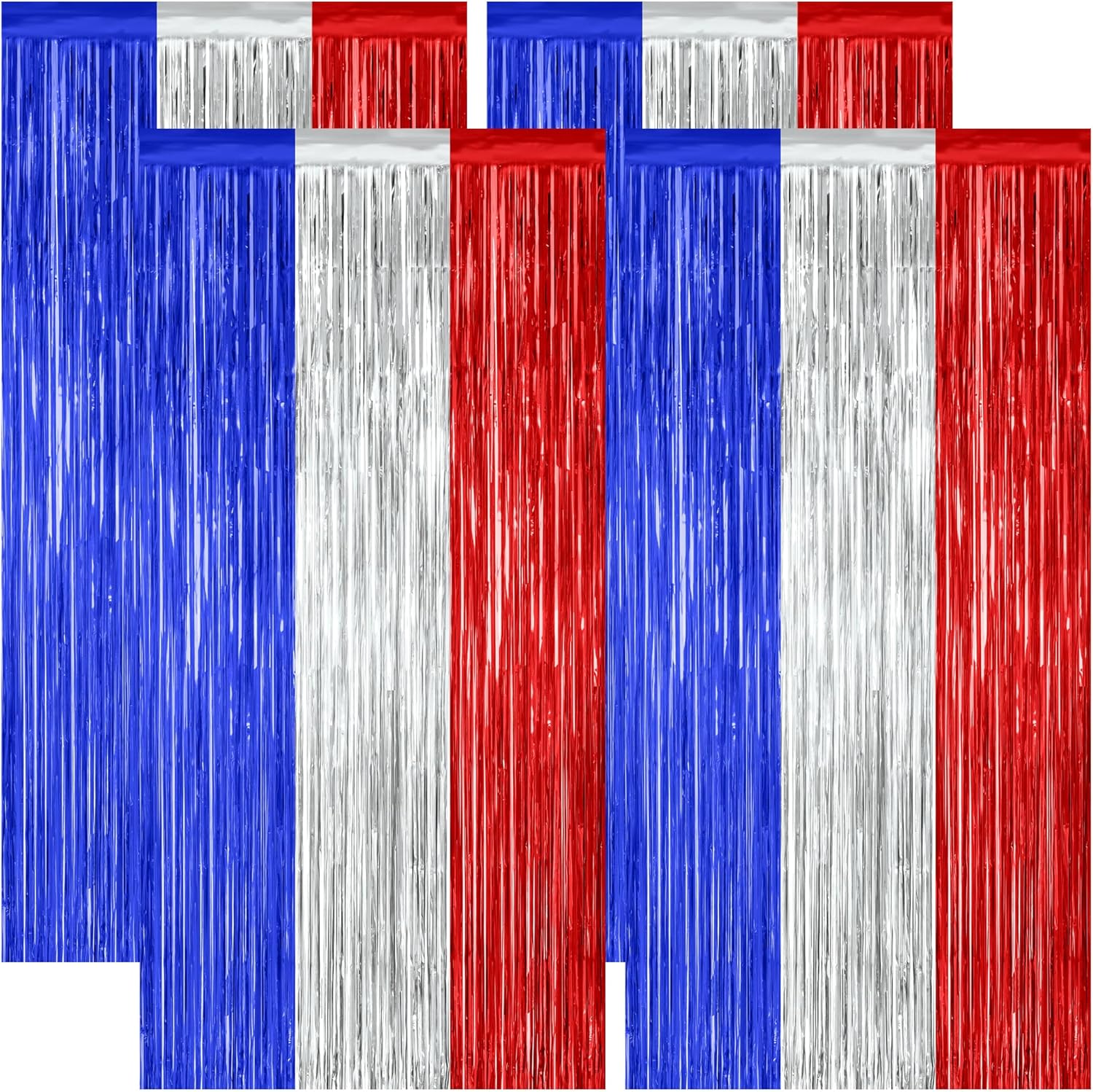 - Package Includes: This set includes 4 pcs patriotic style tinsel backdrop consisting of blue, silver and red colors, each measuring 3.28 x 7.05 feet and can be cut to your desired length.