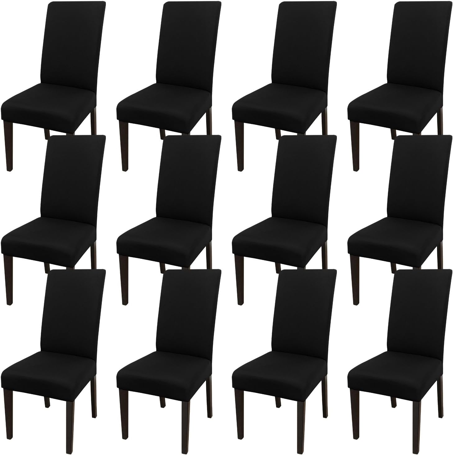 JQinHome Dining Room Chair Covers Set of 12, High Stretch Chair Slipcover Removable Washable Chair Seat Protector Cover for Home Party Hotel Wedding Ceremony (Black)