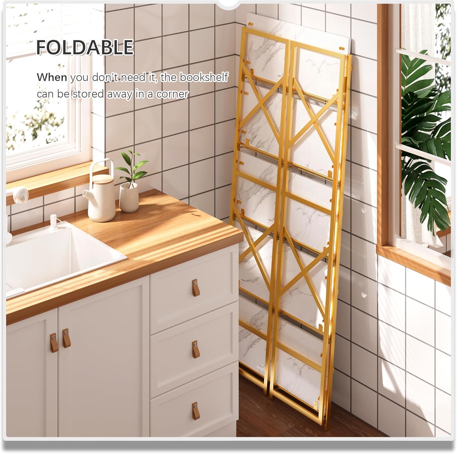 - ćThe Unique Foldable Design ShelfćAllows you to hide the bookshelf behind the corner of the wall, behind the cabinet, or behind the sofa, etc, which can save your space. When you move, you don't need to disassemble it, and you can easily take it with you