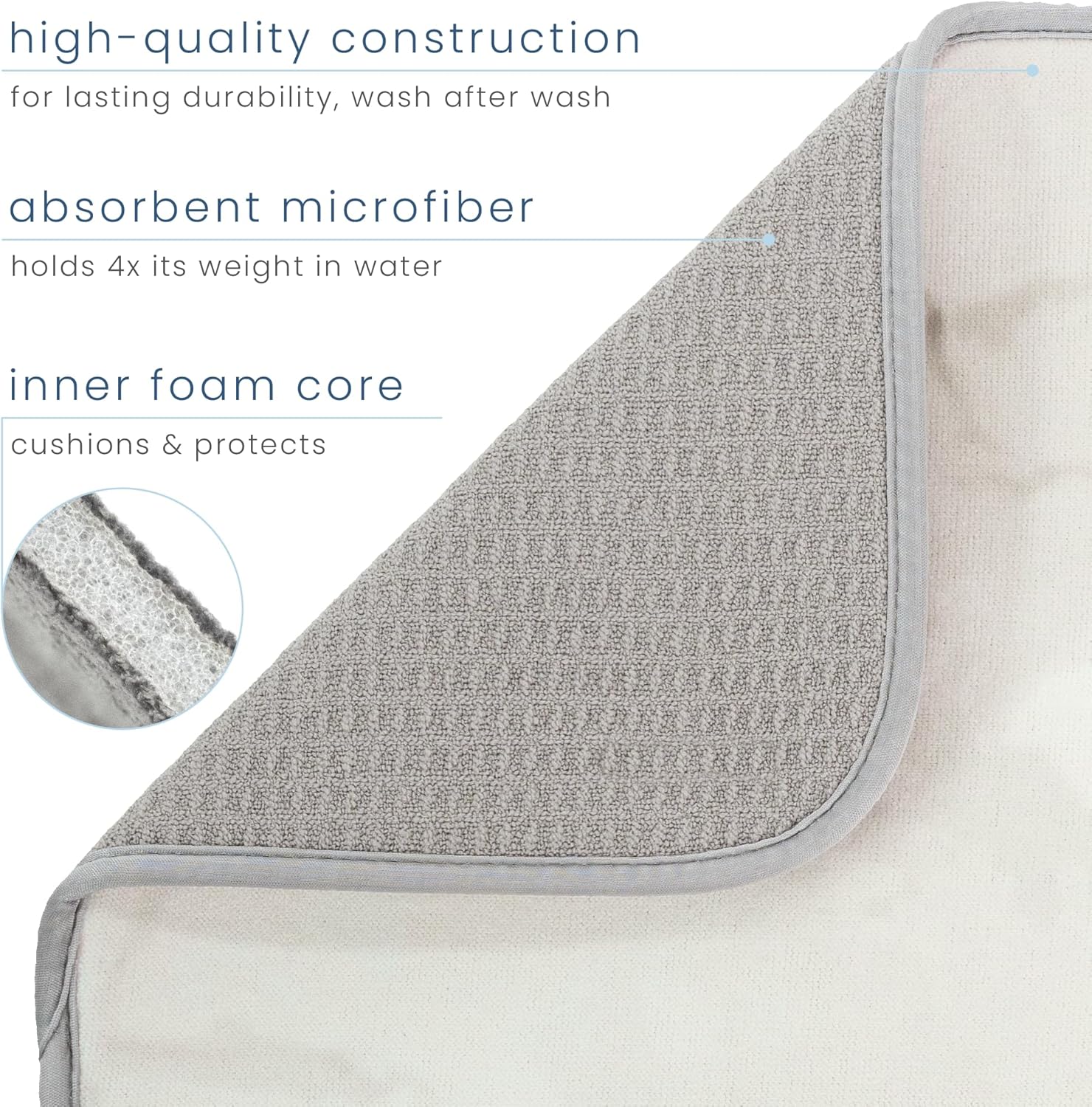 - One S&T INC. Microfiber Dish Dry Mat measuring 16 in. x 18 in.; kitchen mat for countertop absorbs up to 4 times its weight in water to keep your countertop dry, unlike a silicone dish drying mat