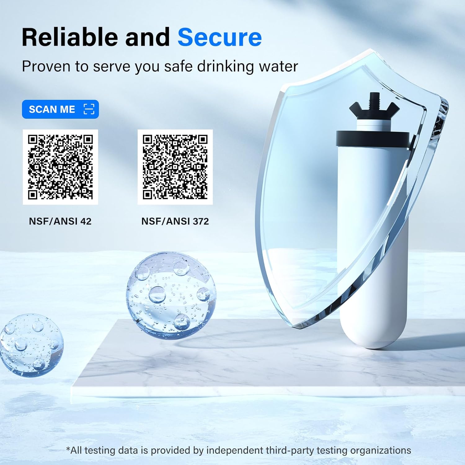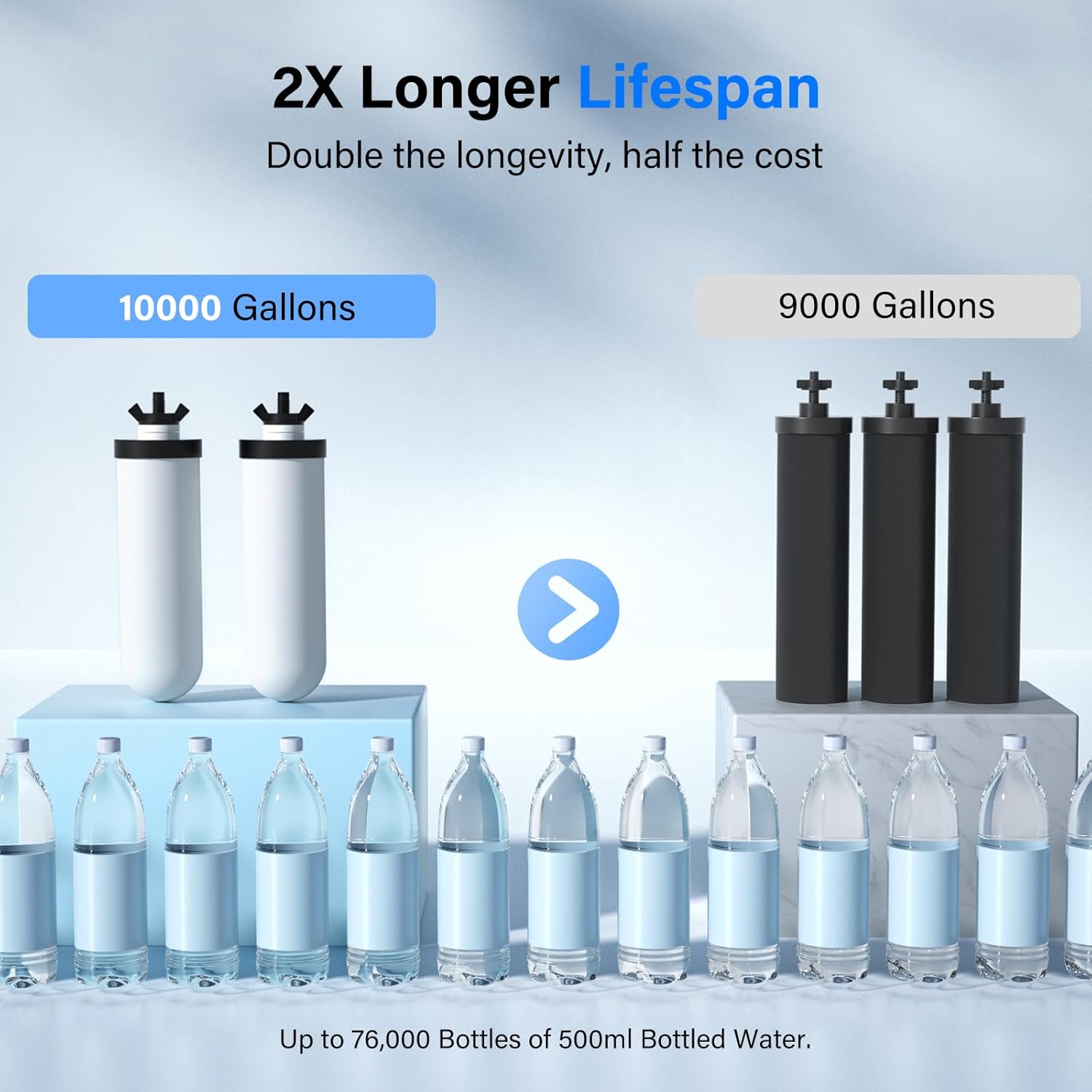 - 【Safe and Washable】-The replacement for Berkey or ProOne water filter is certified against NSF/ANSI 372 standard for lead-free materials. Furthermore, this filter uses BPA-free housing, ensuring its safety. When sedimentation appear on the surface of the filter element, you can use the included sponge to scrub the surface of the filter element to extend the service life of the filter element, but do not use soap or other cleaning materials (otherwise it will clog/damage the filter pores).