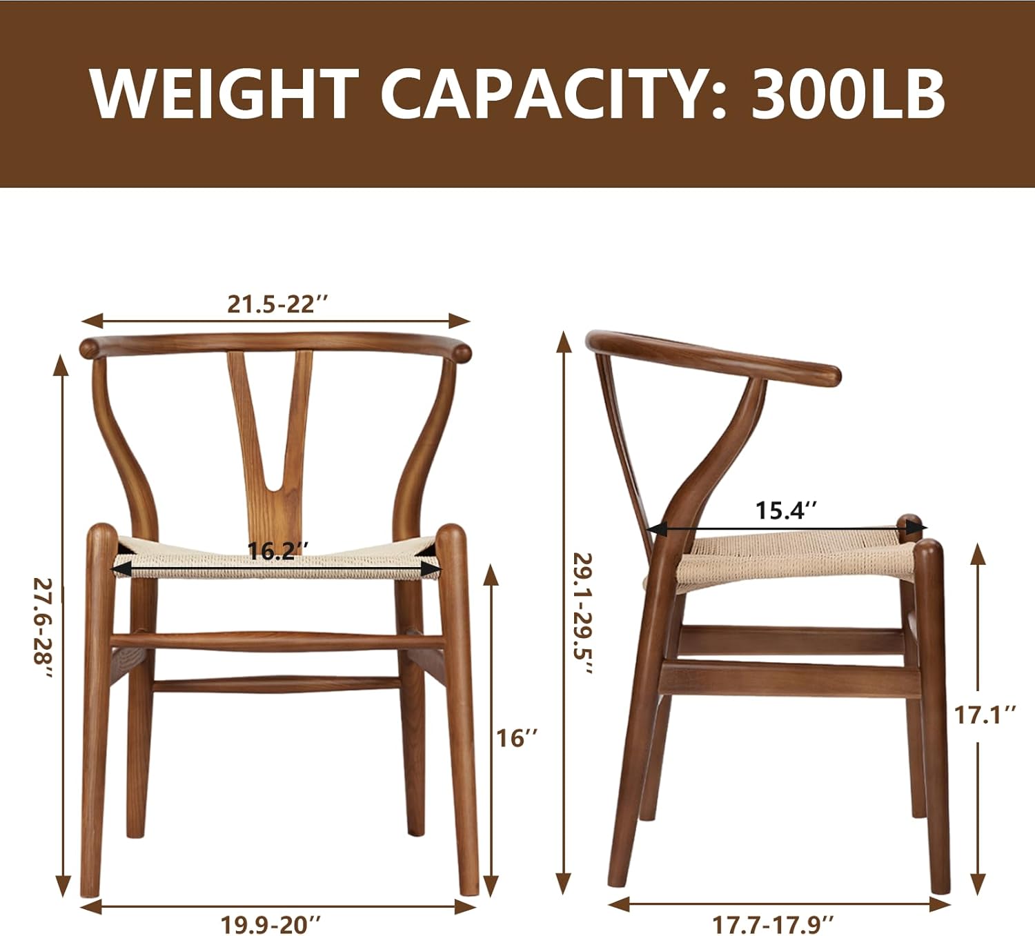 - ćSolid Wood Sturdy & Durableć VODUR wishbone chair are made of solid and durable American ash wood. Each piece of wood is carefully selected by hand and assembled manually. We have tested that each chair can load at least 300 pounds
