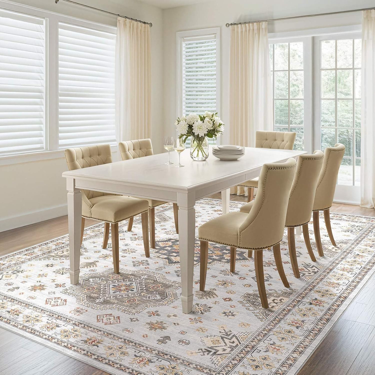 Washable Area Rugs for Living Room - 7x9 Neutral Vintage Distressed Floral Farmhouse Boho Large Soft Floor Rug Indoor Non Slip Carpet for Living Room Bedroom Dining Room Office - Blue Brown