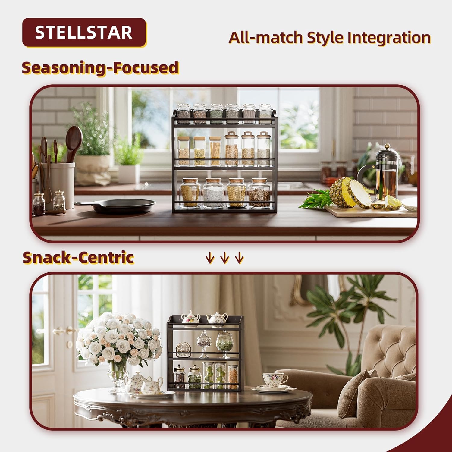 - SIMPLE, ELEGANT & VERSATILE: This rack is both a stunner and a workhorse. Its minimalist design oozes elegance, blending seamlessly with any decor to add warmth. But itās more than a spice rack! Use it to organize your coffee bar, declutter your bathroom, or neatly stack snacks in mason jars. Wherever you place itākitchen, pantry, bathroomāit transforms chaos into a tidy, stylish space