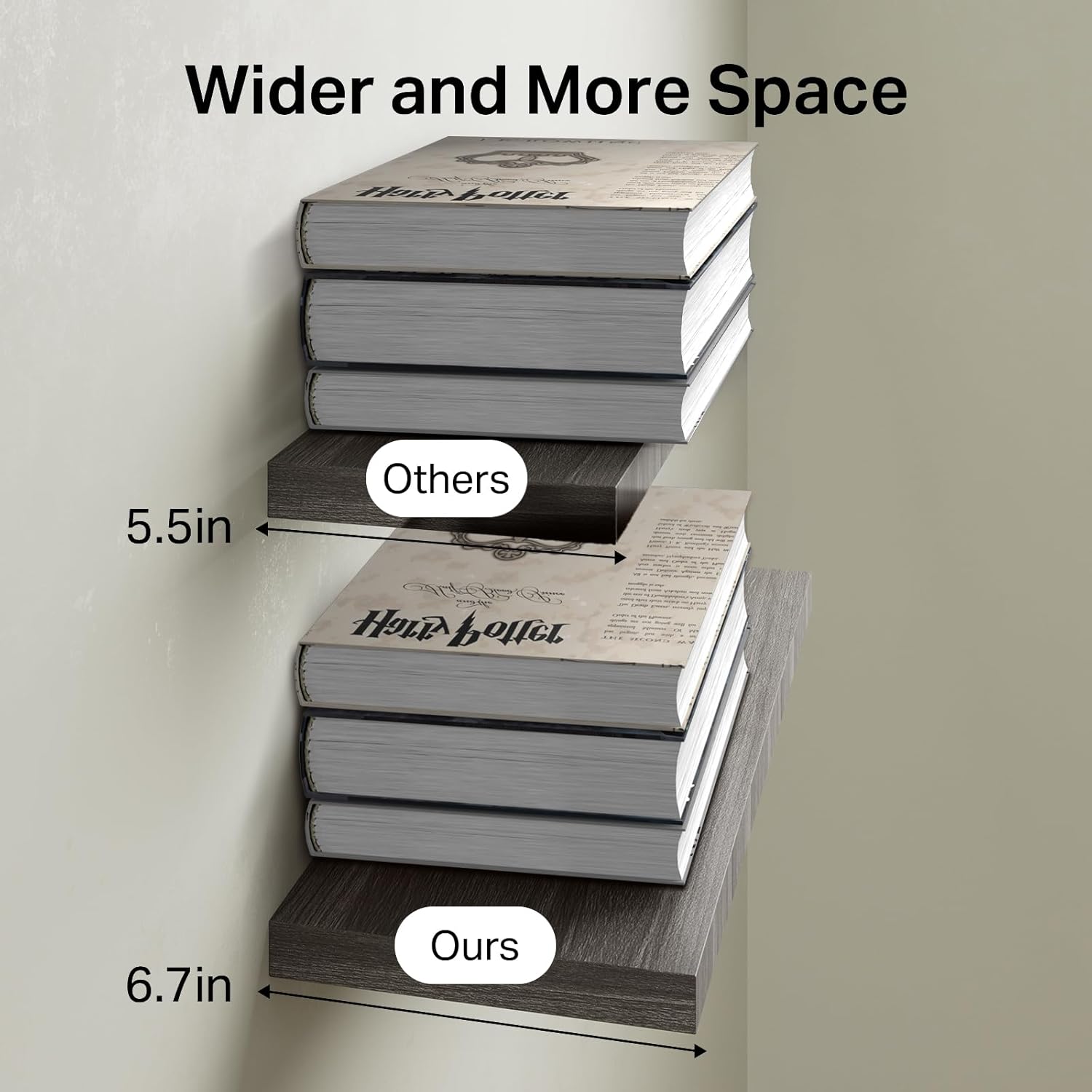 BAYKA Floating Shelves for Wall, Wall Mounted Rustic Wood Shelves for Bathroom, Bedroom, Living Room, Kitchen,Small Hanging Shelf for Books/Storage/Room Decor (Grey, Set of 3, 15.7in)