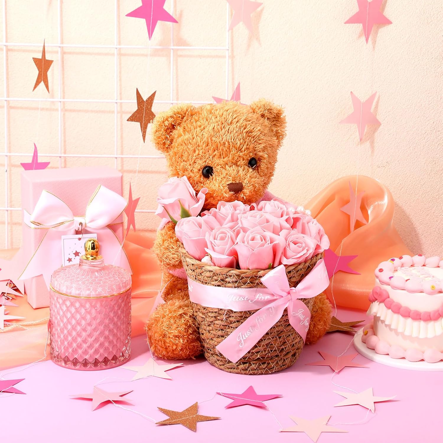 Patelai Glitter Star Garland Banner Decor 130 Feet Star Hanging Bunting Banner Twinkle Backdrop for Homecoming Classroom Wedding Birthday Halloween Christmas Party Supplies(Pink,Purple)