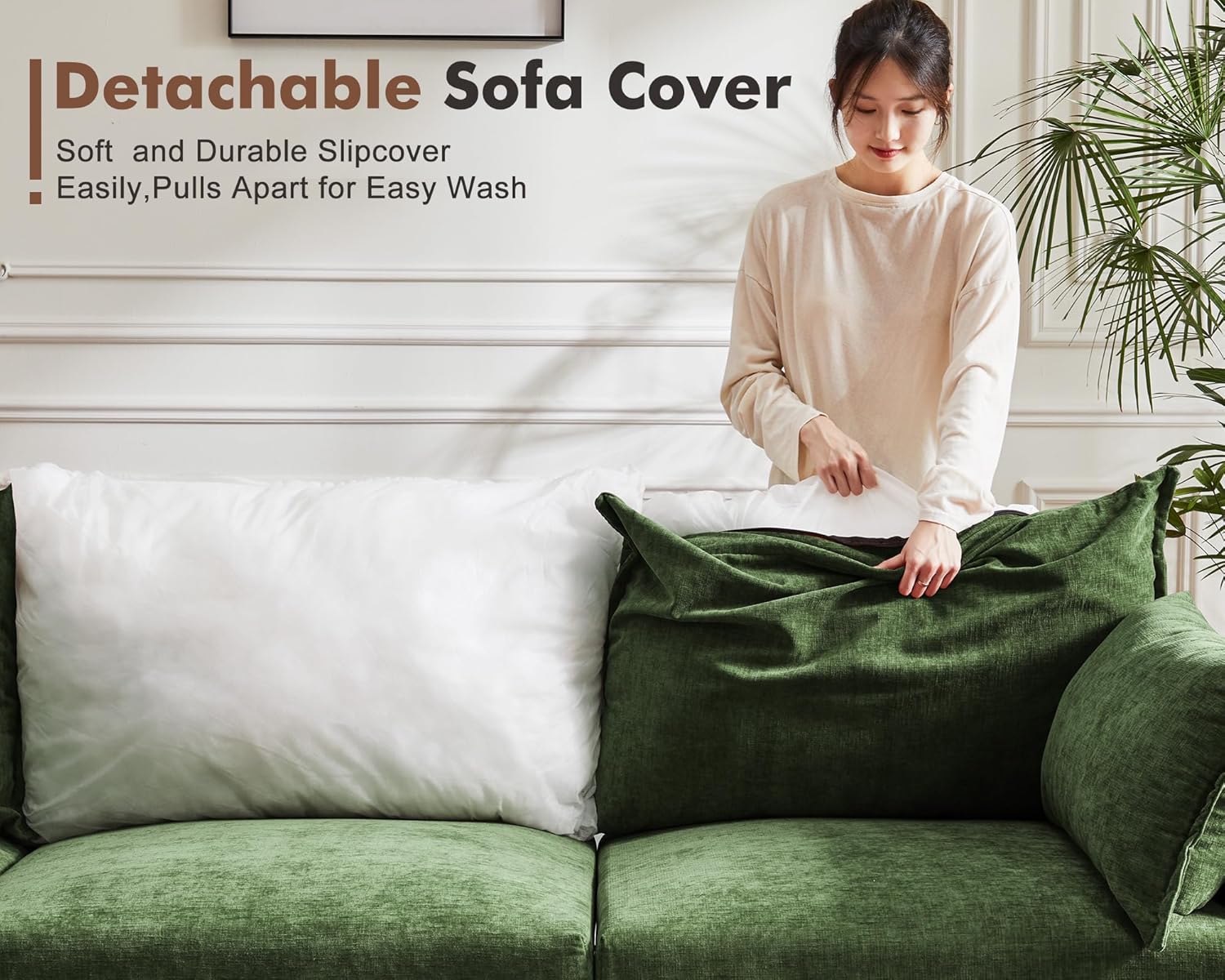 - đź’ˇ Premium Chenille Fabric - The modern sofa is upholstered in premium chenille fabric that feels luxurious to the touch, offering both comfort and durability. The material is not only soft and inviting but also non-pilling and won't stain, ensuring long-lasting quality.