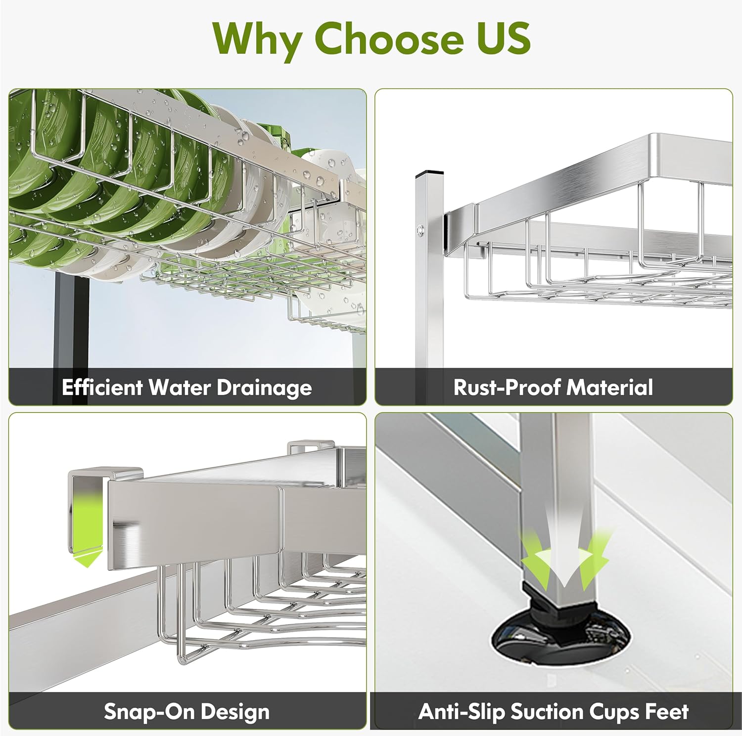 - 💧 Leak Free Water Management: Flat, level shelves let gravity channel drips directly into the sink, eliminating puddles on countertops. The kitchen dish drying rack rust proof grid prevents water pooling, while smooth edges protect dishes from scratches. Wipe clean with a cloth, no disassembly needed for routine maintenance