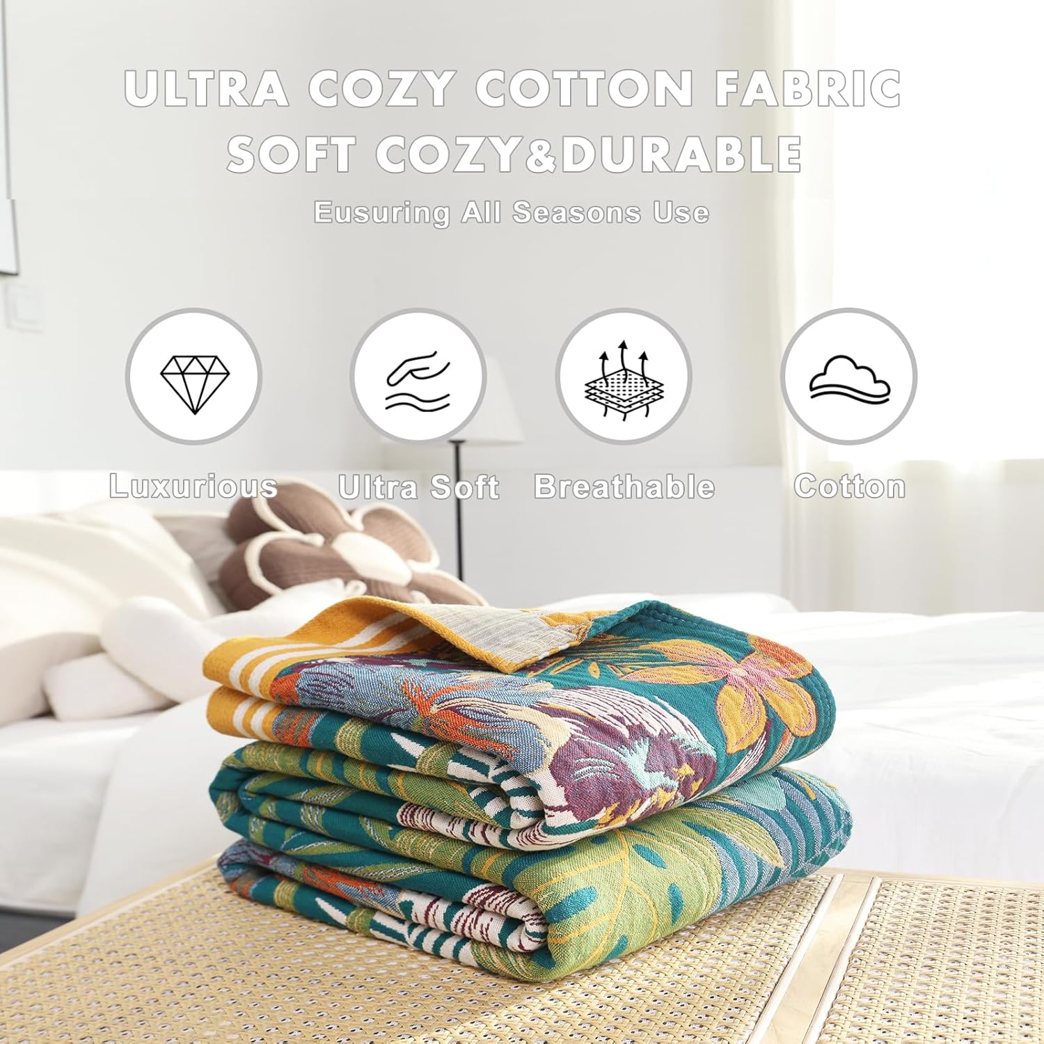 - 【MATERIAL】100% cotton, our throw blanket is made of high quality of 100% cotton, free from harmful substances and harsh chemicals, universal for all seasons, quite soft and breathable, bringing you warmth in cold days.