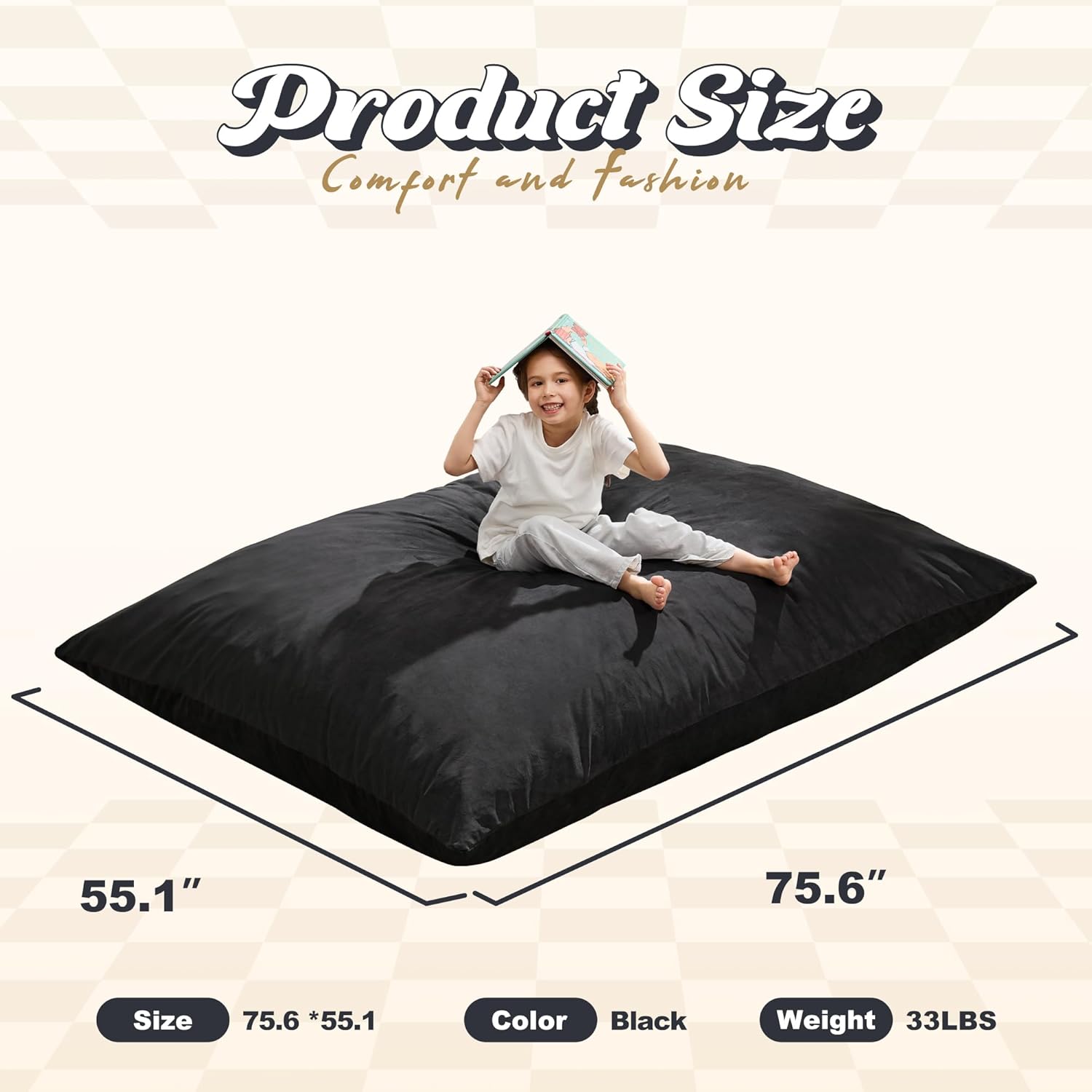 Hobestluk 3 in 1 Bean Bag Chair Giant Bean Bag Chairs for Adults with Velvet Cover Convertible Bean Bag Floor Cushion with Machine Washable Cover for Living Room (Velvet Black)