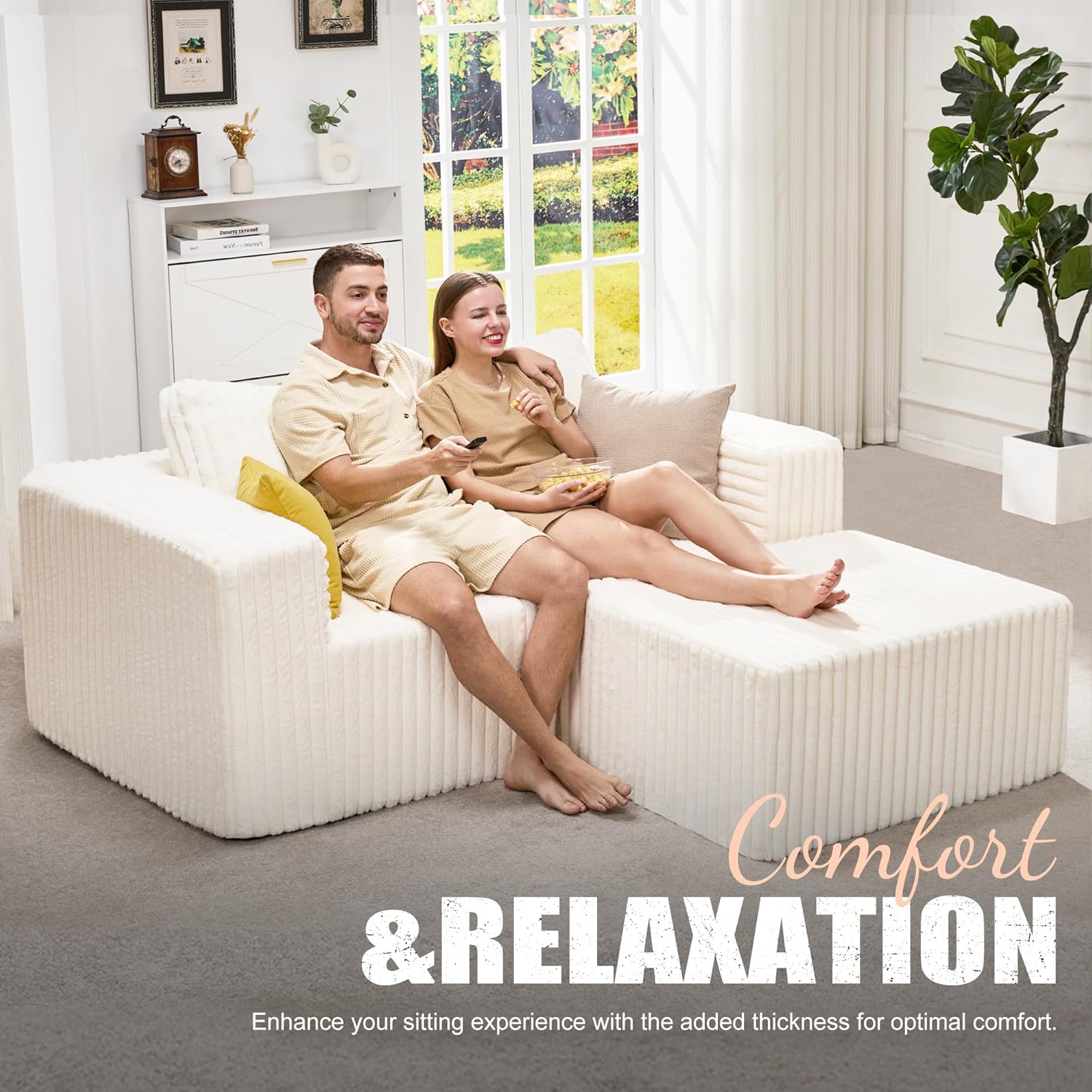 Hobestluk Modular Sectional Sofa Memory Foam Couch L Shape Sofa for Living Room Loveseat with Chaise Lounge Cloud Couch with Removable Cover (Stripe White, Loveseat with Chaise)