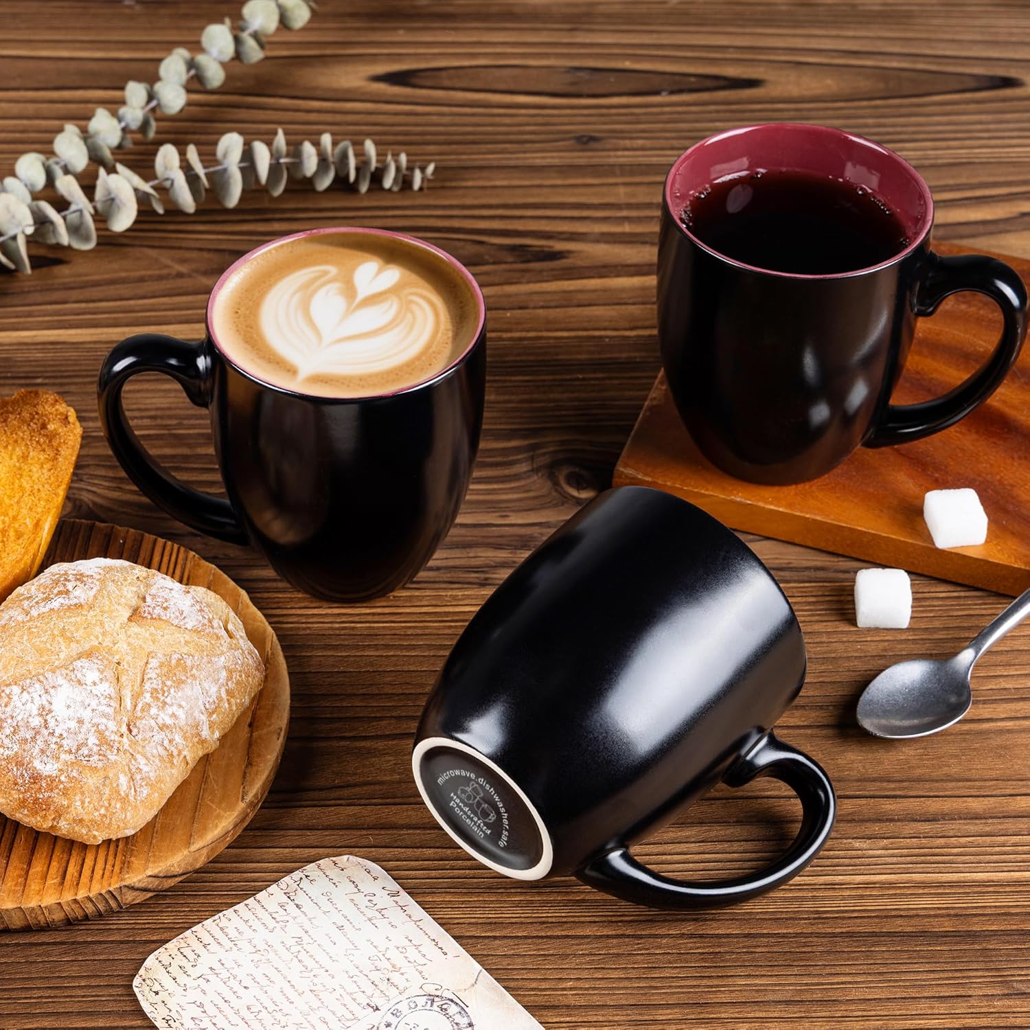- Comfortable Grip & Sleek Matte Black Style: Featuring an ergonomic, easy-grip handle for a secure hold and a smooth rim for enjoyable sipping. The modern matte black exterior adds elegant style to any table, while the wide, stable base prevents spills.