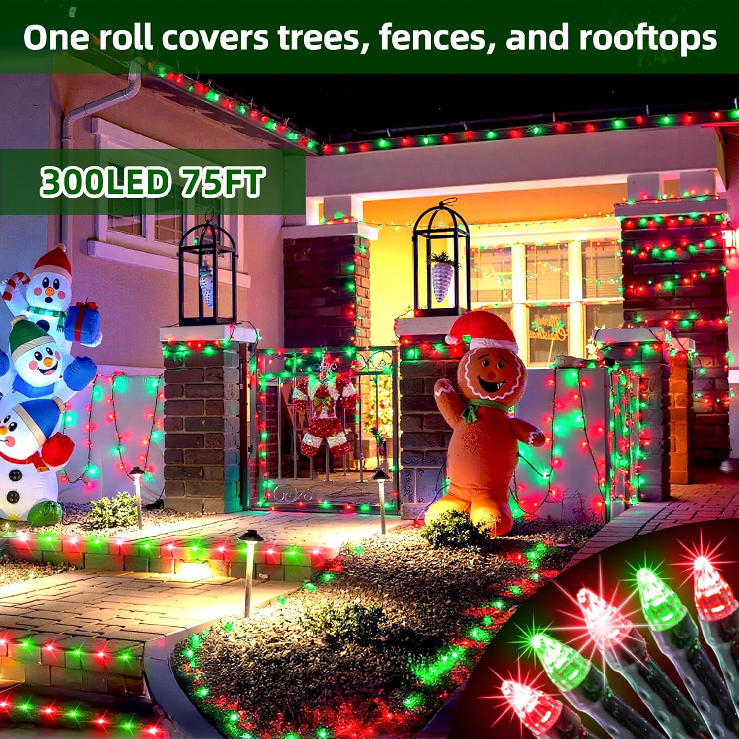 - Perfect Size for Everyday Decorating: At 75ft with 300 LEDs in red and green, these Christmas string lights fill your home with a warm, festive glow. The perfect length for balconies, porches, stair railings, mantels, or a 7ā9ft Christmas tree. Not too long, not too shortāideal for cozy holiday nights. Connect up to 3 sets (225ft, 900 LEDs total) to bring bold Christmas spirit to fences, patios, or the housefront.
