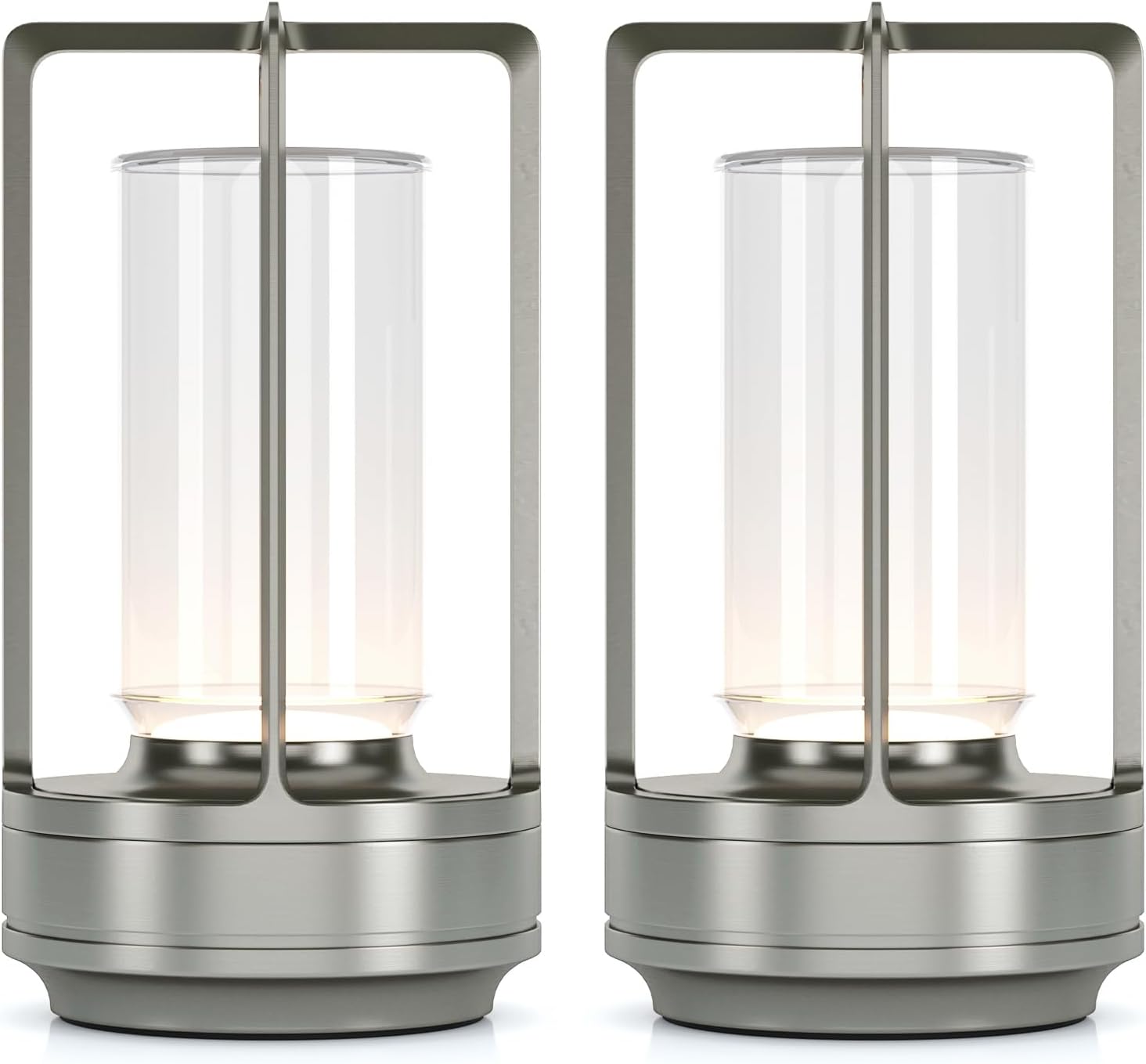 Portable Metal Table Lamp for Indoor/Outdoor ,Rechargeable Cordless LED Lamp, 3-Colour Infinitely Dimming Battery Powered Small Desk Lamp, Restaurant/Bedroom/Bar/Coffee/Camping Light (Sliver Set of 2)