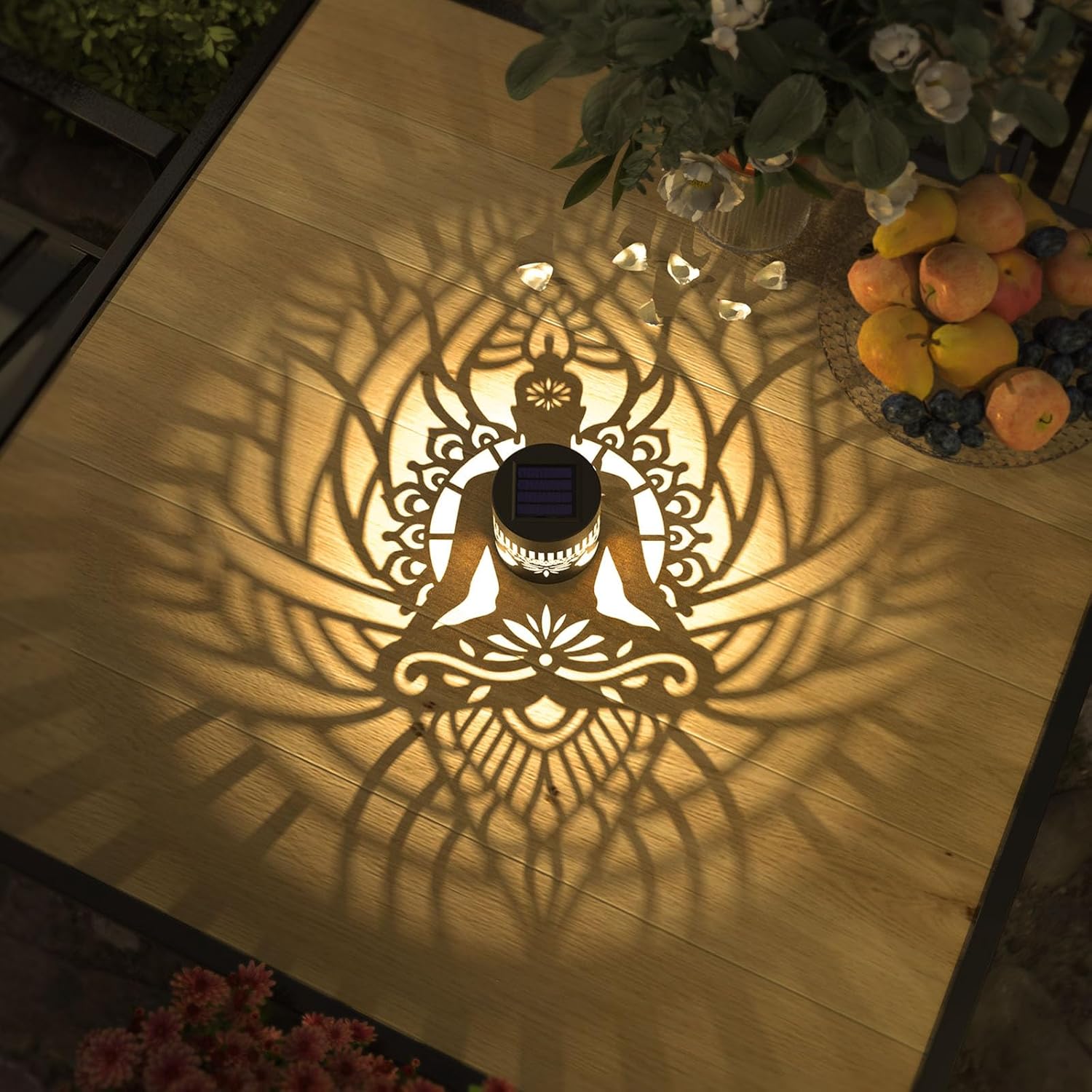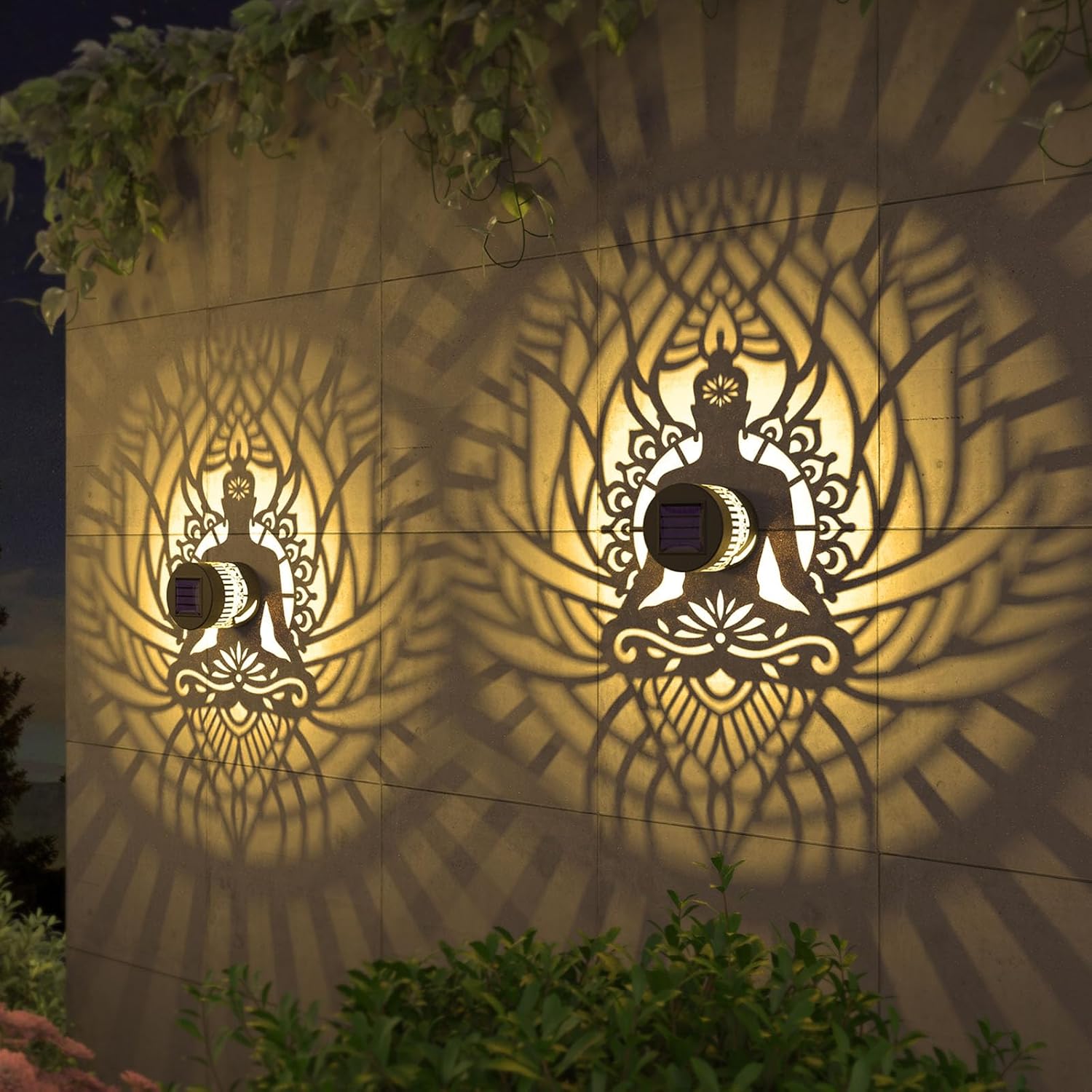 - Good Decoration: 10 lumens of warm yellow light. The small fence solar lights can project a unique and beautiful zen pattern. In a dim environment, the solar lights can illuminate a corner of the fence or the wall and create a beautiful and warm atmosphere. They are very suitable as holiday decorations and gifts for relatives and friends.