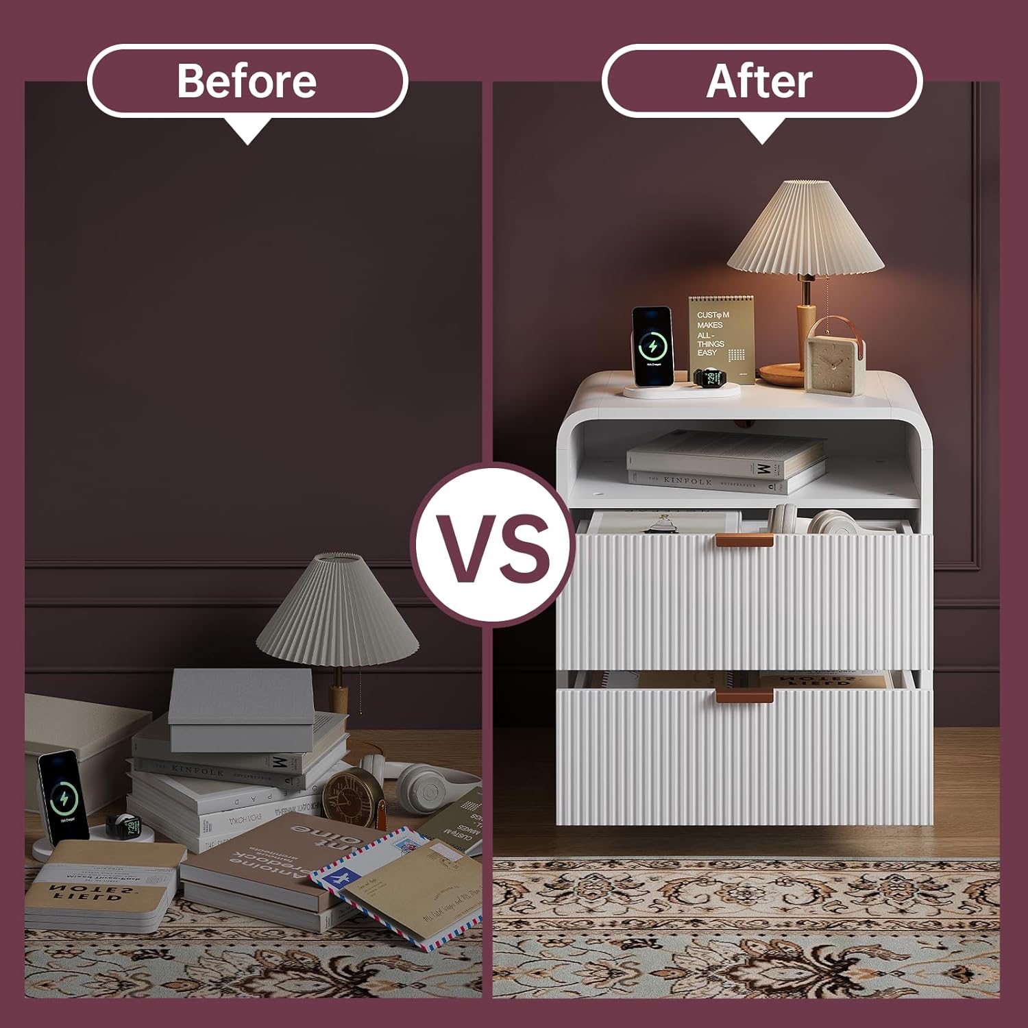 - 【Elegance Meets Chic】 Elevate your space with this nightstand, blending artful design and modern durability. Sculpted fluted details create captivating texture and depth, turning functional storage into a statement piece for any bedroom or living area.