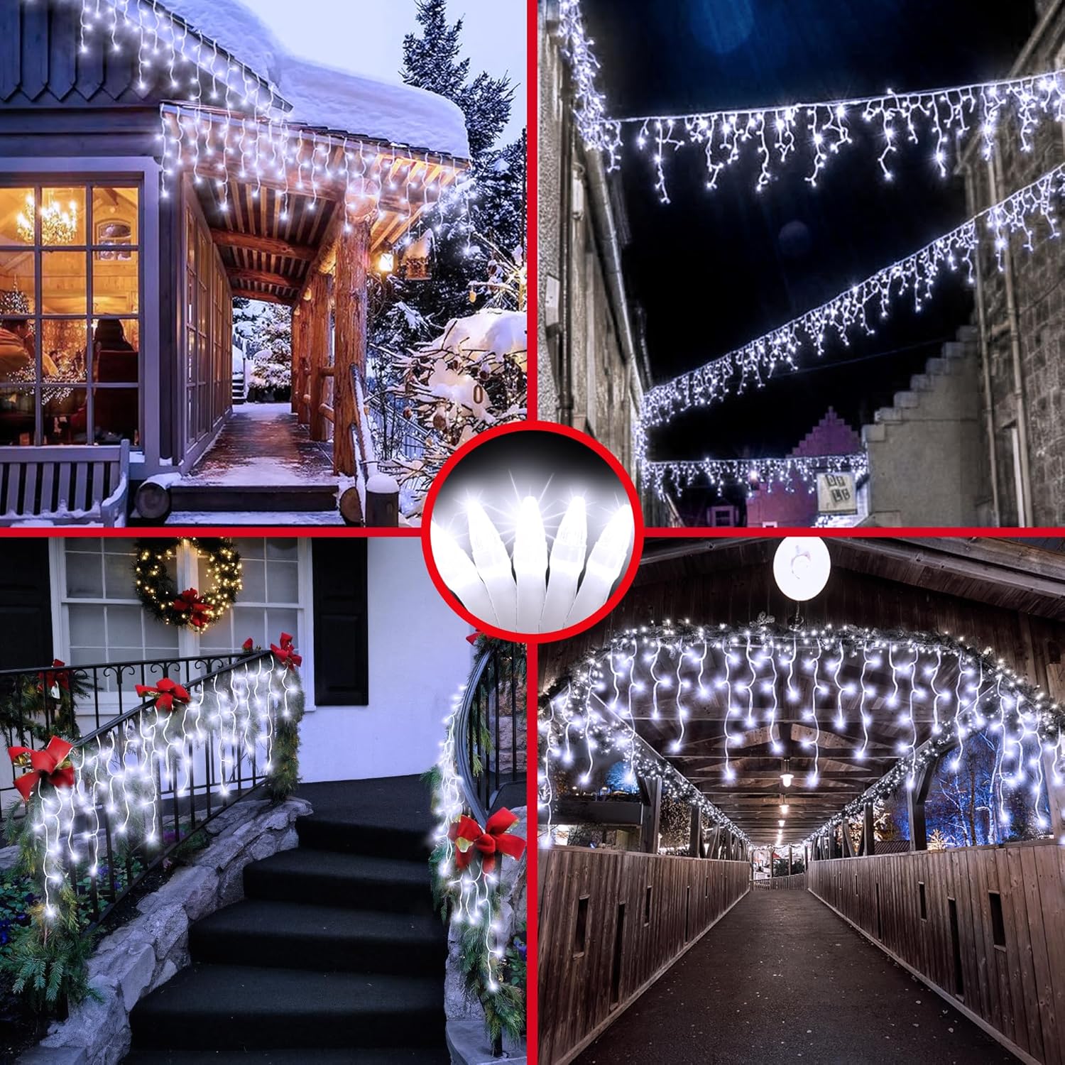 - Bring Christmas Magic to Every Cornerļ¼Transform your home into a winter wonderland with our 82ft cool white LED Christmas lights featuring 810 LEDs and 180 drops. Their pure and frosty glow makes them perfect for hanging along porches, balconies, rooftops, windows, and even fences. Whether youāre decorating your apartment for a cozy holiday atmosphere or lighting up your backyard patio for festive gatherings, these outdoor waterproof icicle lights instantly create an elegant snowy vibe