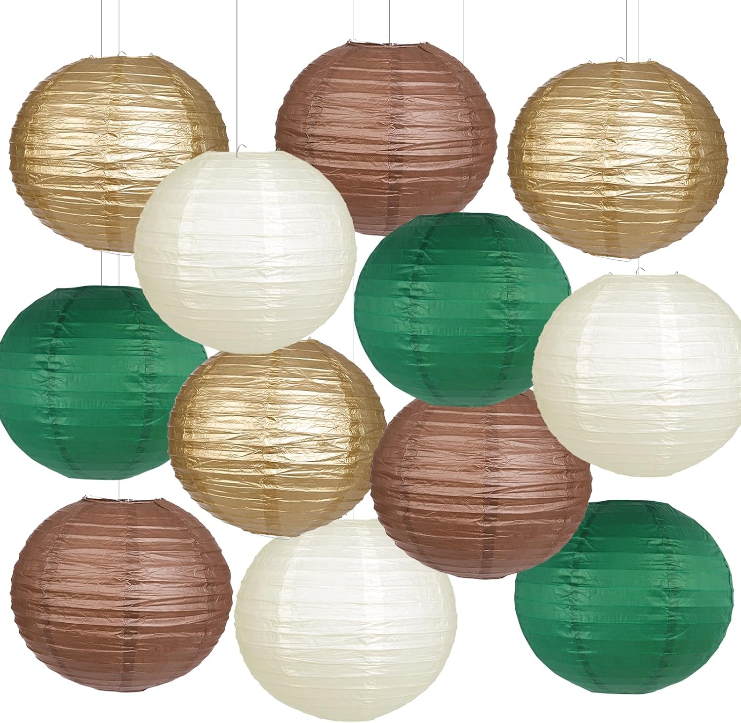 - Beautiful Colors - This set includes paper lanterns in beautiful green, coffee, ivory, gold, 12 pieces of 10 inch lanterns, perfect for various decorative birthday party and wedding shower needs