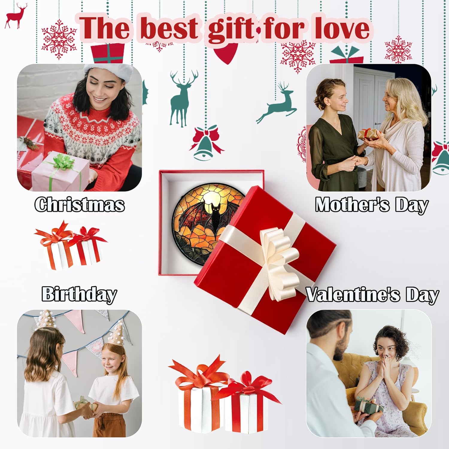 Stained Glass Window Hanging, Black Bat Sun Catcher for Door Home Decor Animal Suncatcher Christmas Mother's Day Birthday Gifts for Women Men Mom and Nana 7.8 in