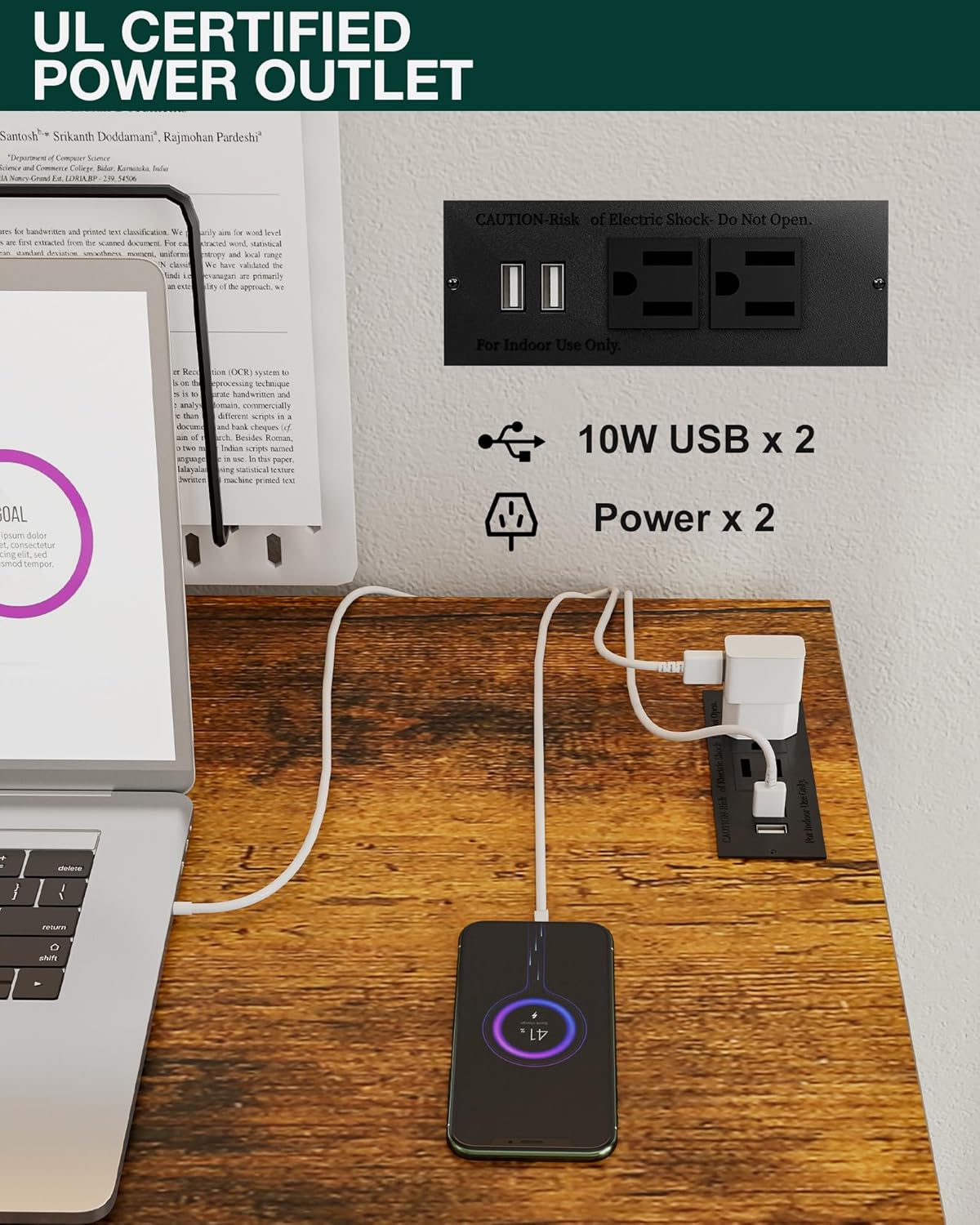 - 👍𝗜𝗡𝗧𝗘𝗚𝗥𝗔𝗧𝗘𝗗 𝗣𝗢𝗪𝗘𝗥 𝗛𝗨𝗕 – 𝗖𝗛𝗔𝗥𝗚𝗘 𝗘𝗩𝗘𝗥𝗬𝗧𝗛𝗜𝗡𝗚 𝗔𝗧 𝗢𝗡𝗖𝗘 — Stay powered and productive with 2 built-in AC outlets and 2 USB ports—perfect for laptops, phones, tablets, and more. No more messy extension cords or reaching for distant plugs; this smart design keeps all your devices charged and your workspace neat