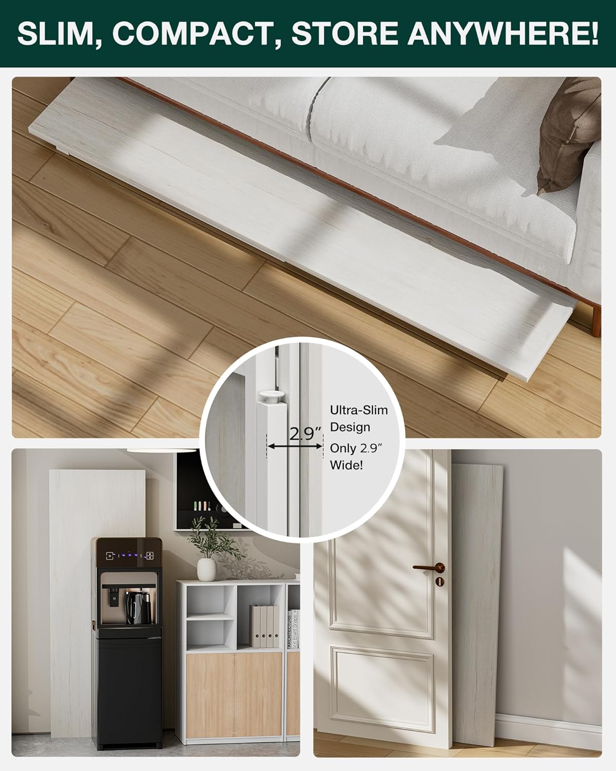 - 👍𝗙𝗢𝗟𝗗𝗦 𝗙𝗟𝗔𝗧 𝗪𝗜𝗧𝗛 𝗦𝗣𝗔𝗖𝗘-𝗦𝗔𝗩𝗜𝗡𝗚 𝗦𝗧𝗢𝗥𝗔𝗚𝗘 — With a folded thickness of only 2.9 inches, this desk fits easily under beds or behind doors. Lightweight and compact, it’s perfect for small-space living or temporary setups like trade shows and pop-up workstations