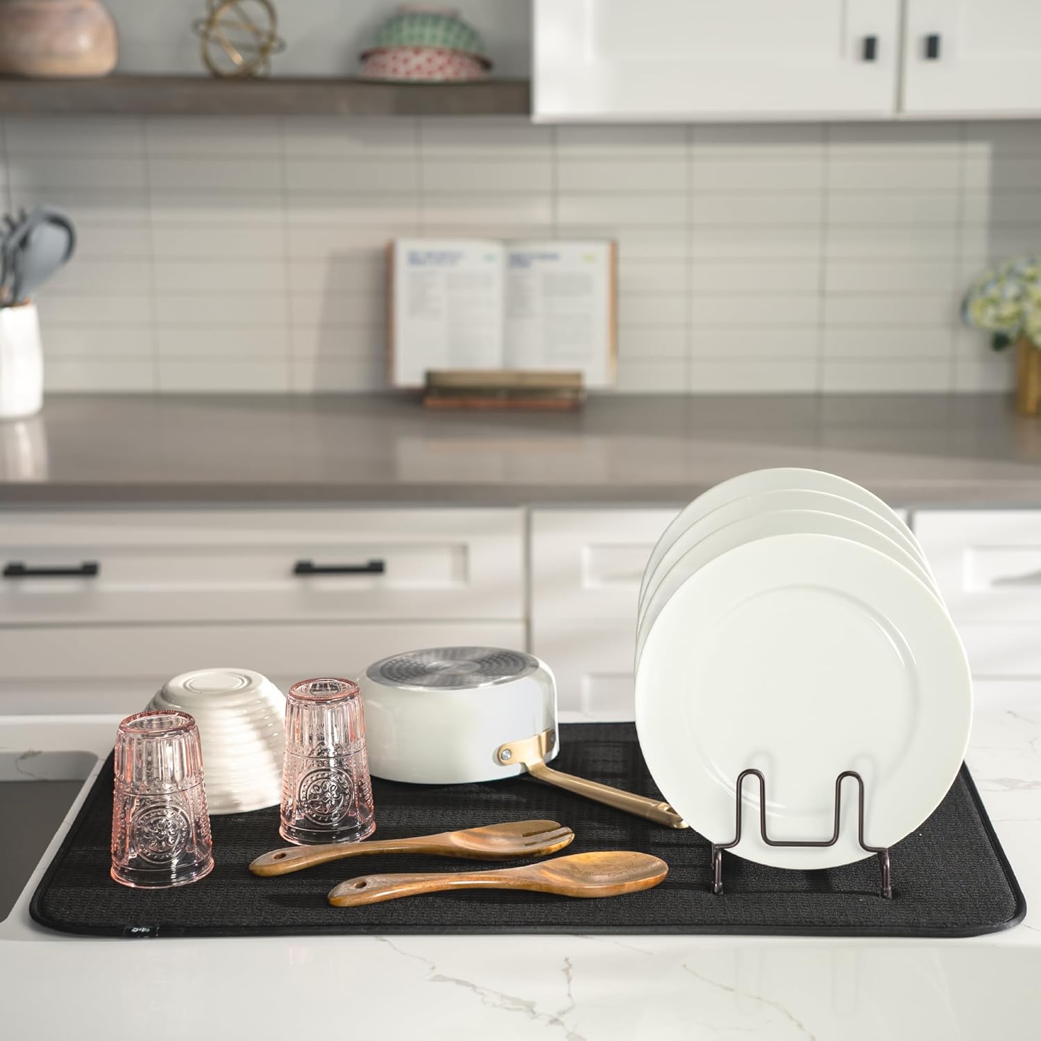 S&T INC. Dish Drying Mat Jumbo, 18” x 30”, Absorbent Microfiber Kitchen Counter Mat, Dish Drying Pad for Dishes, Utensils, Pots and Pans, Jumbo, Black