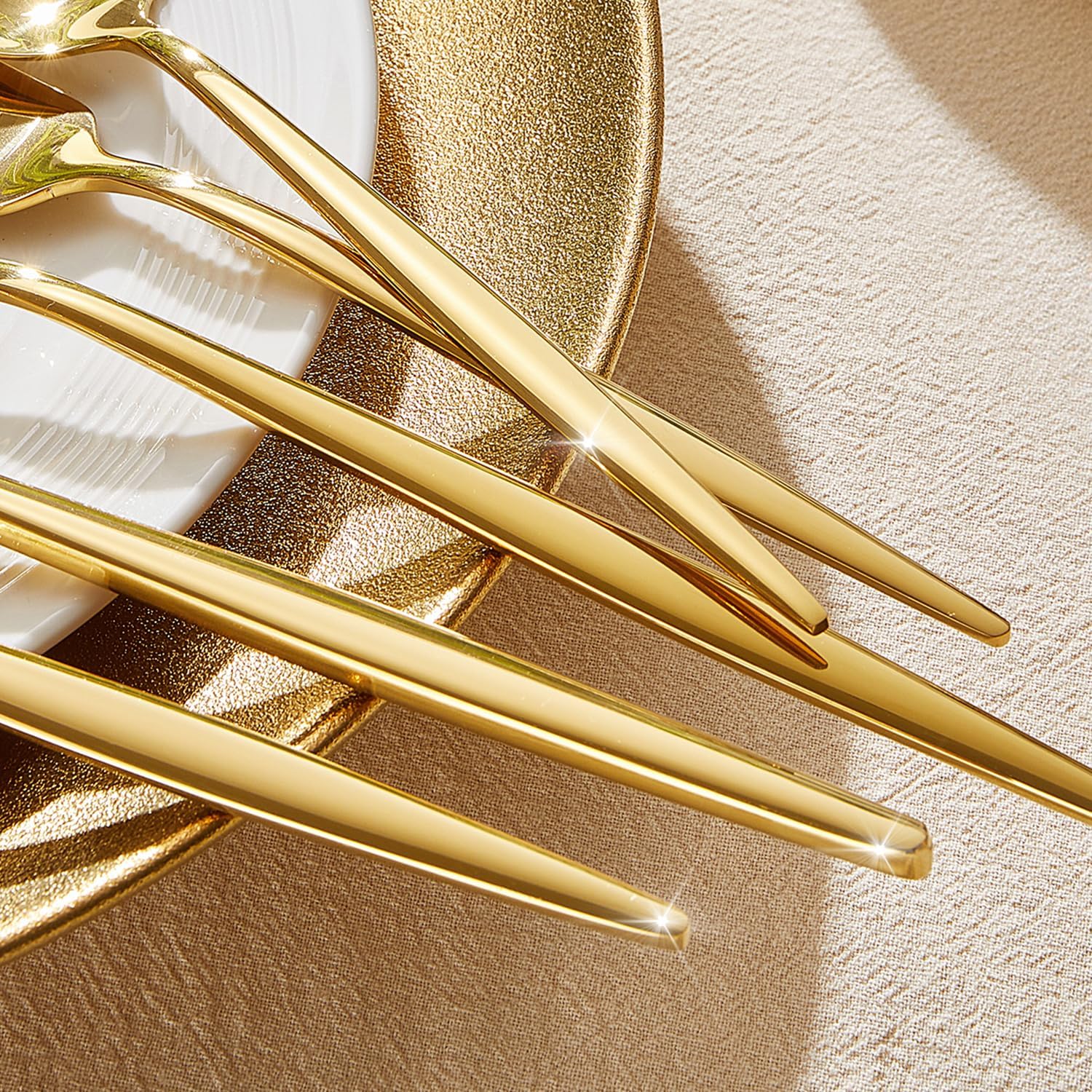 KINGSTONE Silverware Set, 20-Piece Flatware Set Cutlery Set Premium 18/10 Stainless Steel, Tableware Include Forks Knives Spoons for Home Kitchen Restaurant Wedding, Dishwasher Safe, Gold