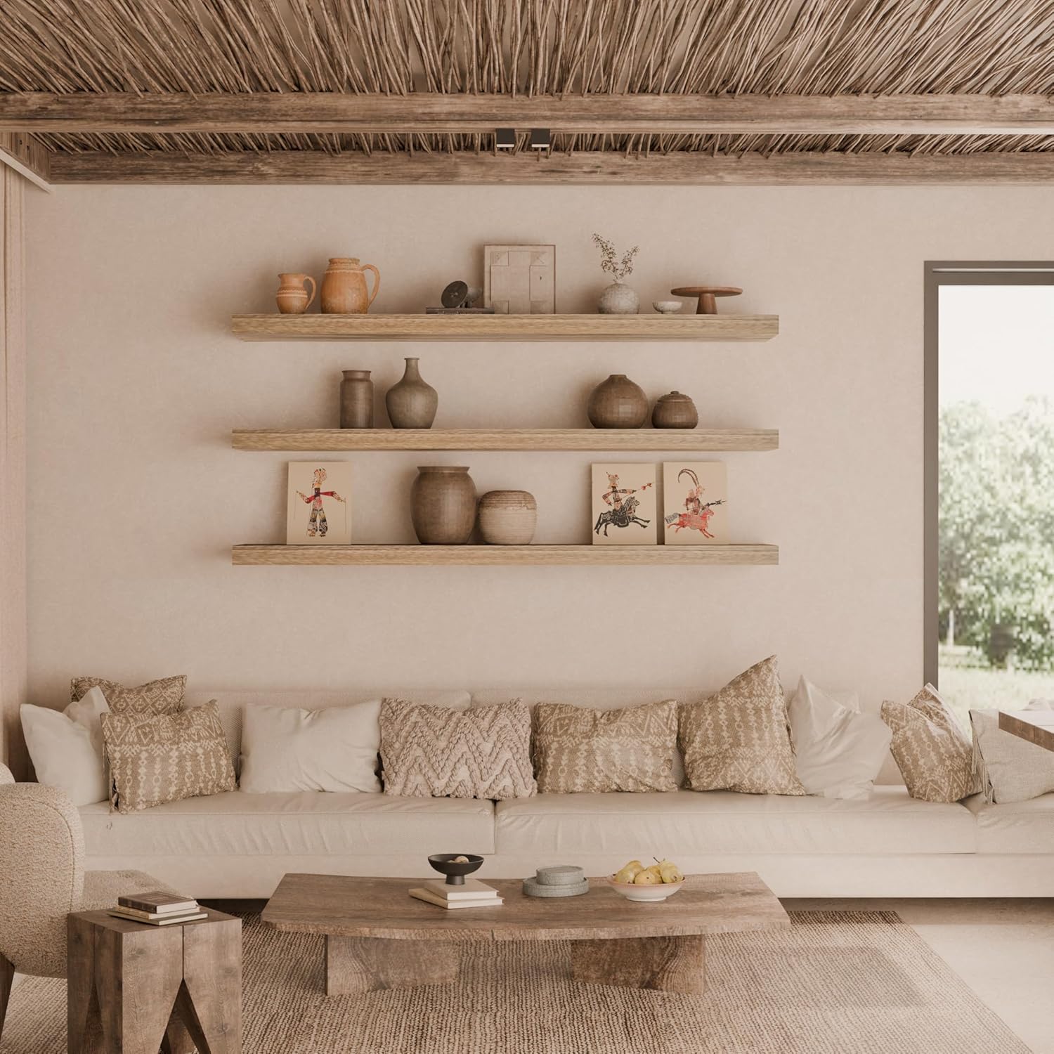 - ćšššš„ š°šØšØš ćThese 48 inch floating shelves are made of 100% natural solid wood with iits own wooden node and grain .The texture of this wood floating shelves for wall is very clear,The smooth surface is easy to clean.