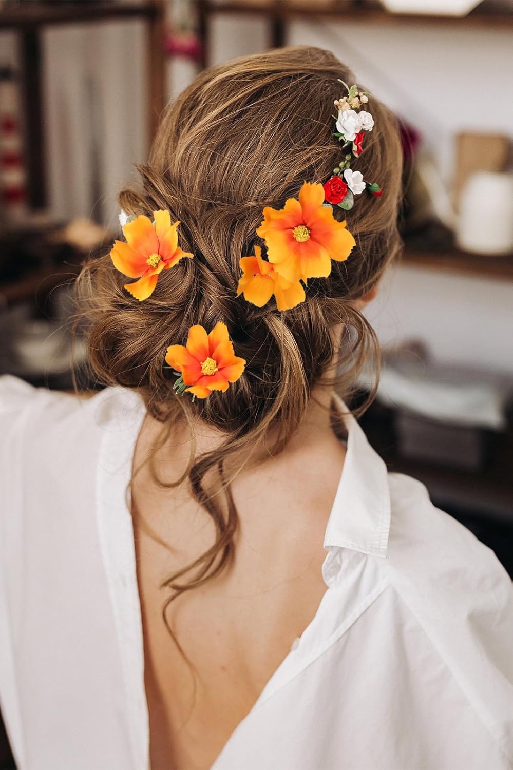 - Attentions: The tall artificial flowers are bent for easier packaging, please straighten them by hands to return items to original shape. Use a hair dryer to fluff all the cosmos flowers artificial petals , making them more vivid
