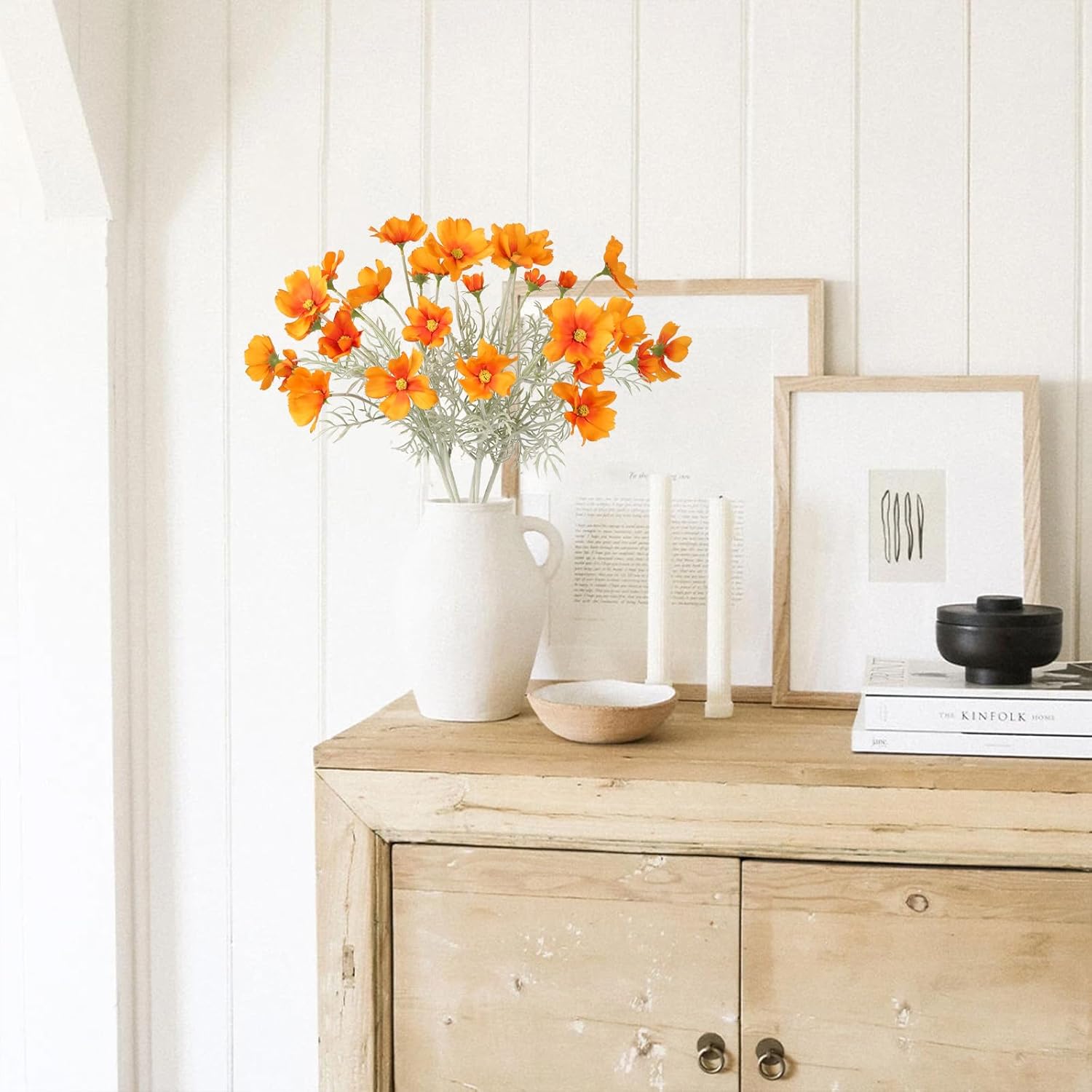 - Quantity and Size: Packed 5PCS orange cosmos artificial flowers. Total approx. 24.5inches/62cm height, bigger daisy flower 3.15ā/8cm, smaller 2.36'' /6cm, cosmos bud 1.18ā/3cm. Each daisy flowers artificial wildflowers set with 4 large flower heads, 1 small and 1 bud, total with 30 flowers heads. The long stem artificial flowers is ideal for your tall flowers for floor vase floral arrangements