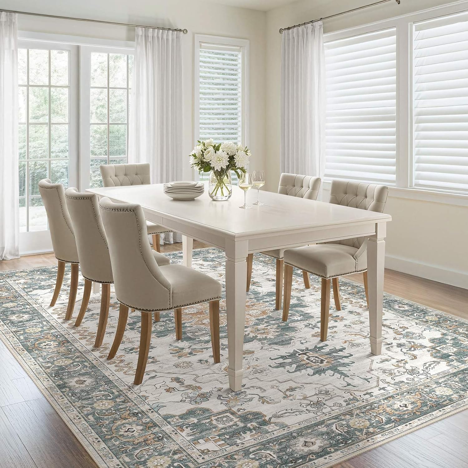 Washable Area Rugs for Living Room - 5x7 Neutral Vintage Distressed Floral Farmhouse Boho Large Soft Floor Rug Indoor Non Slip Carpet for Living Room Bedroom Dining Room Office - Green/Grey