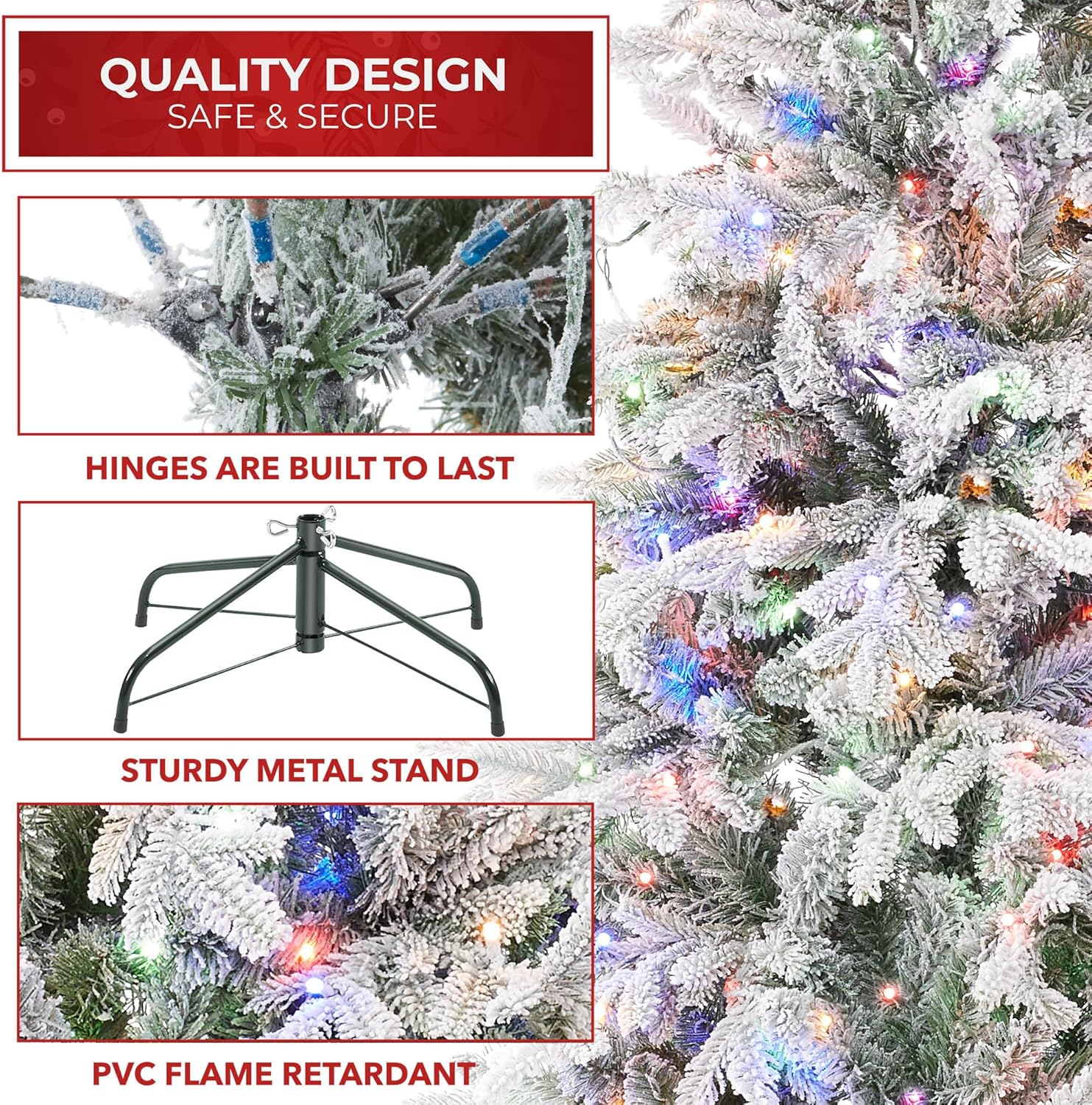 Casafield 7.5FT Pre-Lit Snow Flocked Slim Aspen Fir Artificial Holiday Christmas Tree with White & Multicolored LED Lights, Realistic Noble Fir with Metal Stand