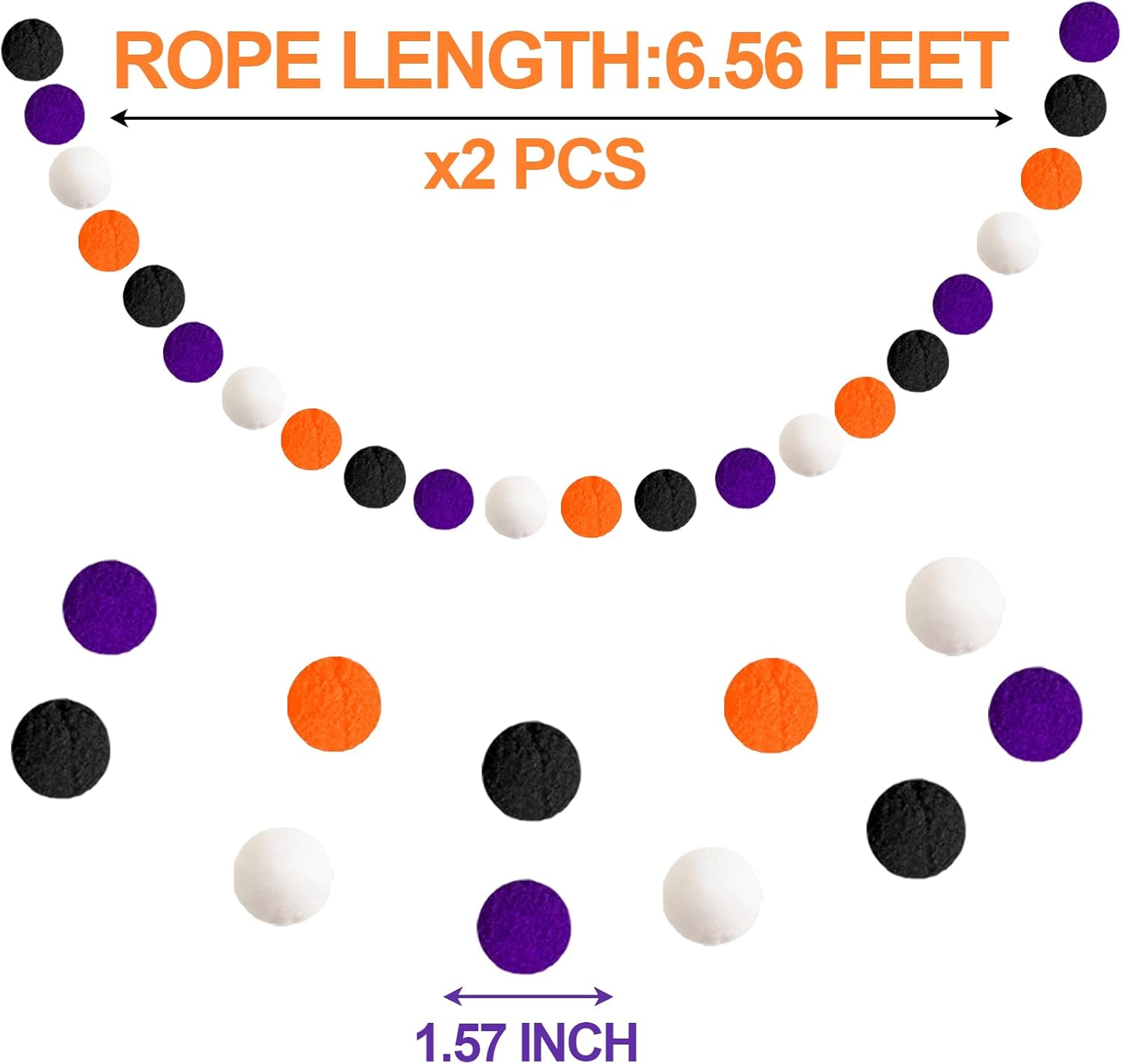 XmasExp Pom Pom Garland Decorations - Large Spring Felt Ball Garland for Mantle, Indoor Home Decor, Easter Tree Ornaments, Kids Room and Party Hanging Decor,13 Ft. (Halloween, 1.57")